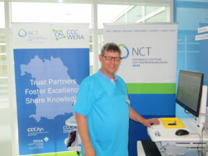 Zu Beginn erhielten die Teilnehmer einen Überblick über die Entwicklung der Cherry-Tastaturen von älteren Modellen bis hin zu aktuellen Produkten sowie über Unternehmensgeschichte und Arbeitsweise. Cherry wurde 1953 in den USA gegründet und hat seit den 1970er Jahren seinen Hauptsitz in Deutschland.