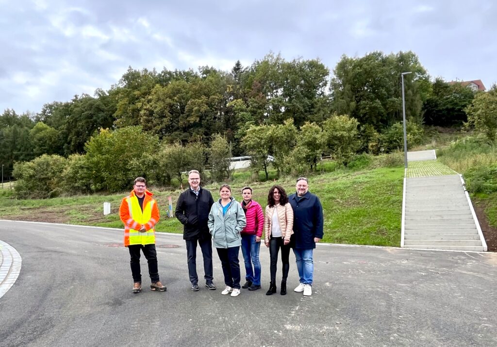 Beim Abnahmetermin verschafften sich Bürgermeister Thomas Beer, Bauamtsleiterin Sabine Eichinger, die zuständigen Bauamtsmitarbeiterinnen Anna Diel und Doris Janus sowie Stephan Strauß, Josie Weichmann und Andreas Sebast vom Ingenieurbüro gemeinsam mit Martin Sommer von der ausführenden Tiefbaufirma ein Bild von der erfolgreichen Fertigstellung der Erschließung des Baugebiets.