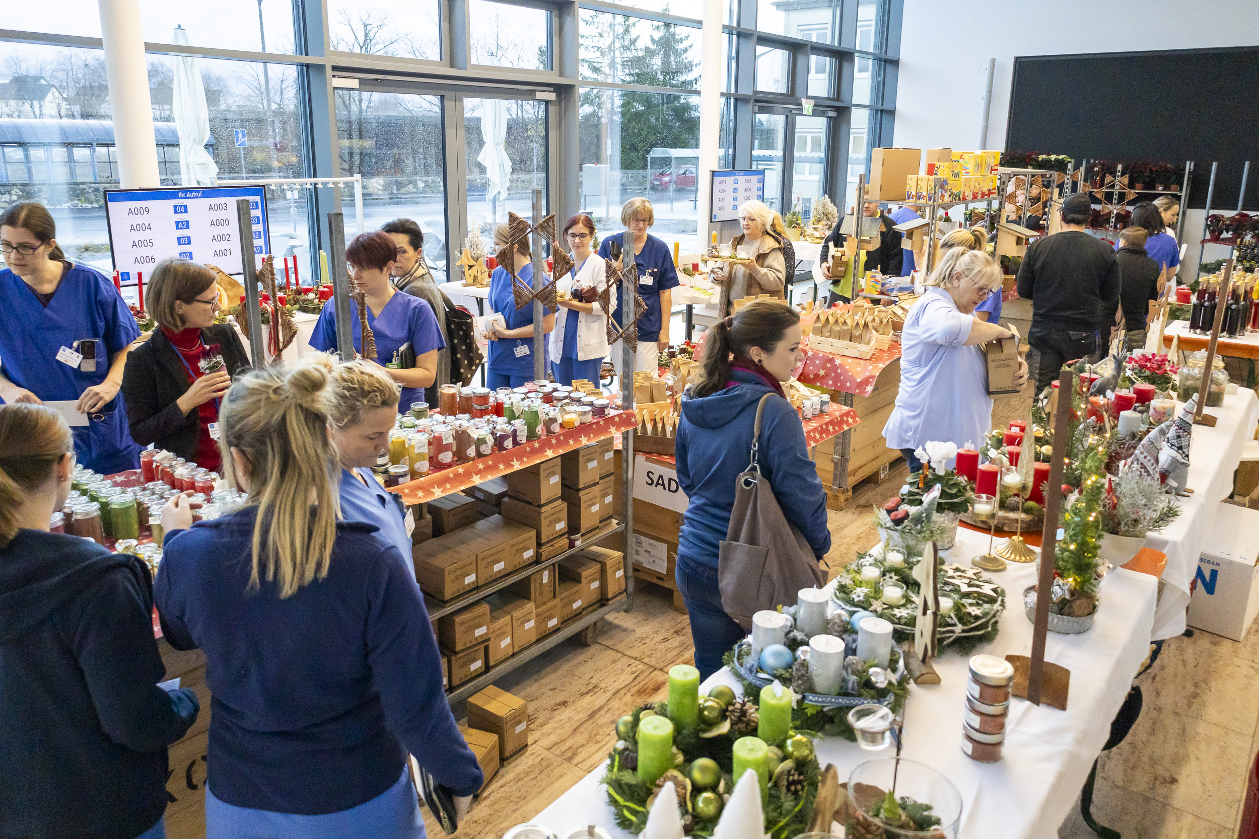 Auch in diesem Jahr lädt das Barmherzige Brüder Krankenhaus St. Barbara am Freitag, 22.11.2024 alle Interessierten zum Adventsmarkt im Foyer des Krankenhauses ein. Die Barmherzige Brüder Behindertenhilfe richtet den Adventsmarkt aus und bietet eine große Bandbreite an Produkten, die in den Werkstätten in Algasing, Gremsdorf und Reichenbach produziert werden. Im Angebot sind nicht nur Adventsgestecke, Adventskränze und weihnachtlich dekorierte Topfpflanzen aus der Klostergärtnerei Reichenbach, sondern auch eine breite Auswahl an Geschenken für Weihnachten wie Holzspielzeug oder Duftkerzen, verschiedene Liköre und Weine der BB Klosterkellerei und die beliebten Essige z.B. Granatapfel- oder Blaubeer-Essig.
