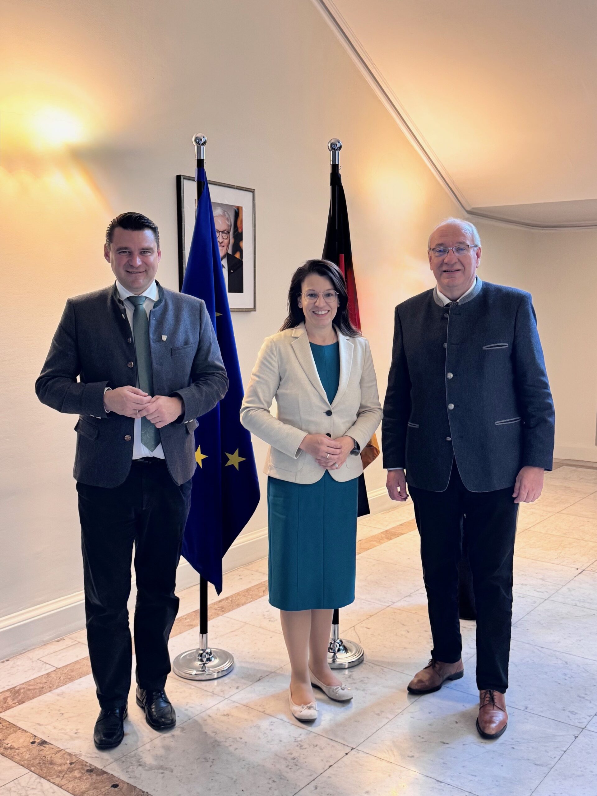 Die Parlamentarische Staatssekretärin und Bundestagsabgeordnete Martina Englhardt-Kopf empfing Schwandorfs Landrat Thomas Ebeling und Franz Löffler, Bezirkstagspräsident der Oberpfalz und Landrat des Landkreises Cham zu einem Antrittsbesuch im Bundesministerium für Landwirtschaft, Ernährung und Heimat.