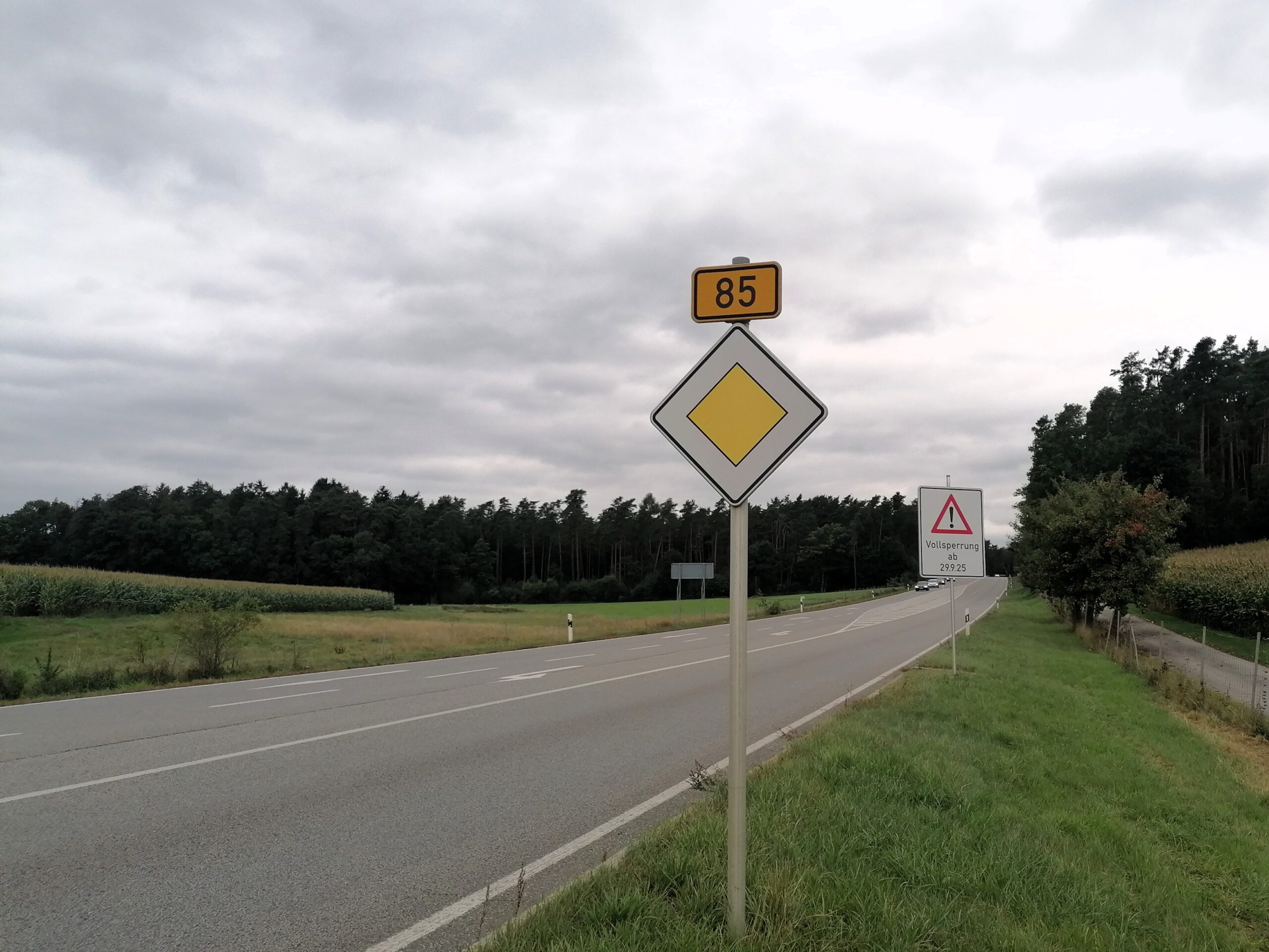 Ab kommenden Montag, den 29. September, wird der über 16 Jahre alte Fahrbahnbelag und die Asphaltbinderschicht des vierspurigen Abschnittes auf der Bundesstraße B85 zwischen Bodenwöhr/Kaltenbrunn und Neuenschwand grundlegend erneuert. Für die Dauer der Fahrbahnsanierung wird die B85 komplett gesperrt und ist großräumig zu umfahren. Rund 1,6 Millionen Euro wird die Sanierung des rund 2,5 Kilometer langen Abschnitts kosten. Die Bauzeit wird je nach Witterung ca. sechs bis maximal acht Wochen betragen. Bei der Erneuerung des Belages soll Niedrigtemperaturasphalt verwendet werden, um die Aerosolbelastung für die Arbeiter möglichst gering zu halten. Dieser muss nur auf 140 Grad erhitzt werden, normaler Asphalt bis auf 180 Grad.