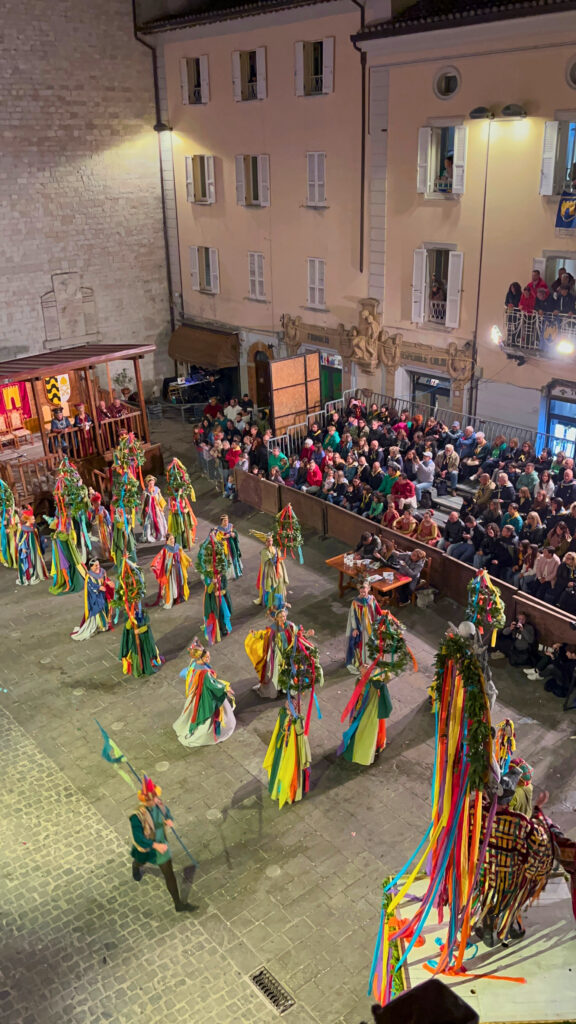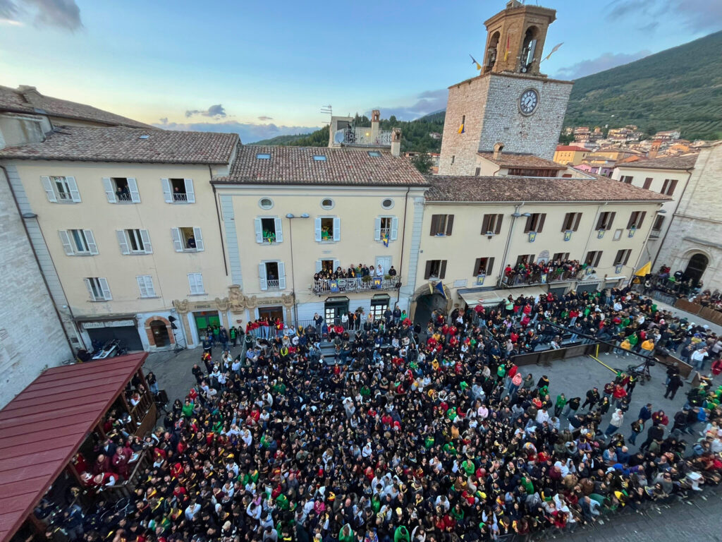 Bei den „Giochi de le Porte“ treten an drei Tagen die vier Stadtteile in mehreren Disziplinen gegeneinander an: San Benedetto, San Martino, San Facondino und San Donato – repräsentiert durch die Farben Blau, Rot, Grün und Weiß. Sie messen sich bei einem Eselrennen, beim Pfeil und Bogen-Schießen und beim Zielen auf einen Porzellanteller mit einer mittelalterlichen Schleuder. Umrahmt werden die Spiele von einem feierlichen Einzug der einzelnen Gruppen und einem mehrstündigen Umzug durch die Stadt, bei dem die Stadtteile mit selbstgestalteten Wagen, Kostümen und – teils schauspielerischen – Darbietungen für Begeisterung bei den Zuschauern sorgen. Als Sieger der diesjährigen „Giochi de le Porte“ ging der Stadtteil San Benedetto hervor.
