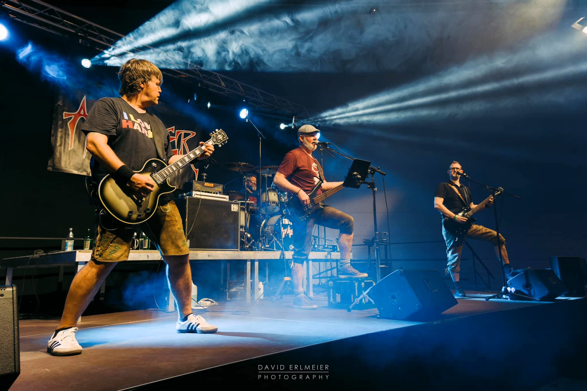 Im Anschluss wird kurz vor 21 Uhr „Anger“, vier Rocker aus Nittenau, ein musikalisches Feuerwerk mit druckvollen Riffs und purer Energie zünden. Ihre Setlist erstreckt sich über Klassiker aus dem Heavy Metal und Hardrock der 80′ und 90′ Jahre. Mit namenhaften Schwermetallgrößen wie Accept, Metallica und Judas Priest, als auch klassischen Hardrock der Marken AC/DC oder Deep Purple rocken Sie bis heute alt wie jung von den Stühlen. Schon mehrmals heizten sie den Besuchern des Nittenauer Bürgerfestes ein.