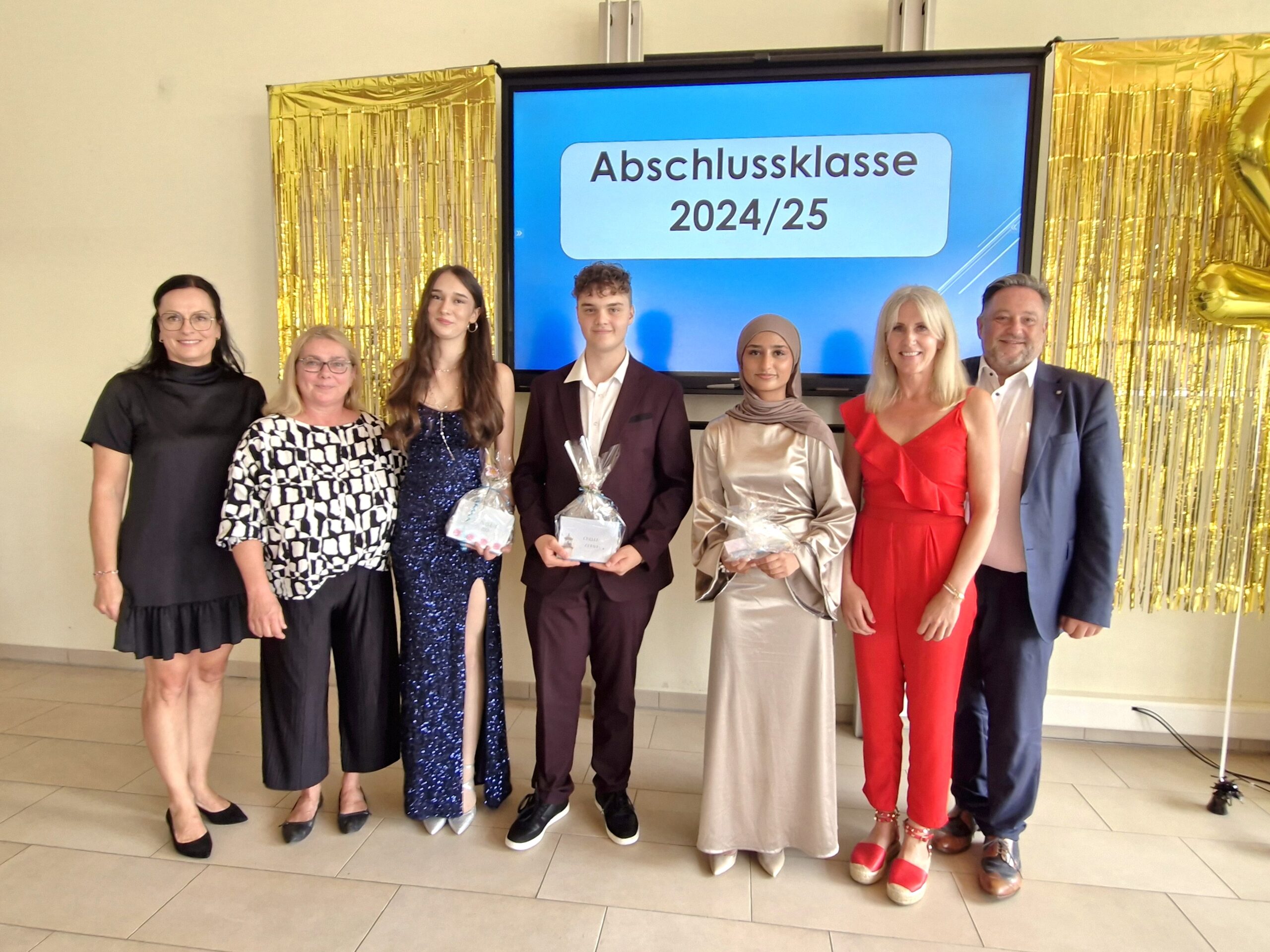 Bei der feierlichen Abschlussfeier würdigten Schulleiterin Sabine Kunz und Konrektorin Stefanie Friedl nicht nur die schulischen Erfolge, sondern auch den weiteren Weg der Jugendlichen: Nahezu alle haben bereits eine Ausbildungsstelle oder setzen ihren Bildungsweg an weiterführenden Schulen fort. Besonders hervorzuheben sind die drei Jahrgangsbesten: Adrian Fischer (Notenschnitt 1,3), Irem Everest (1,4) und Rabia Anwar (1,7).