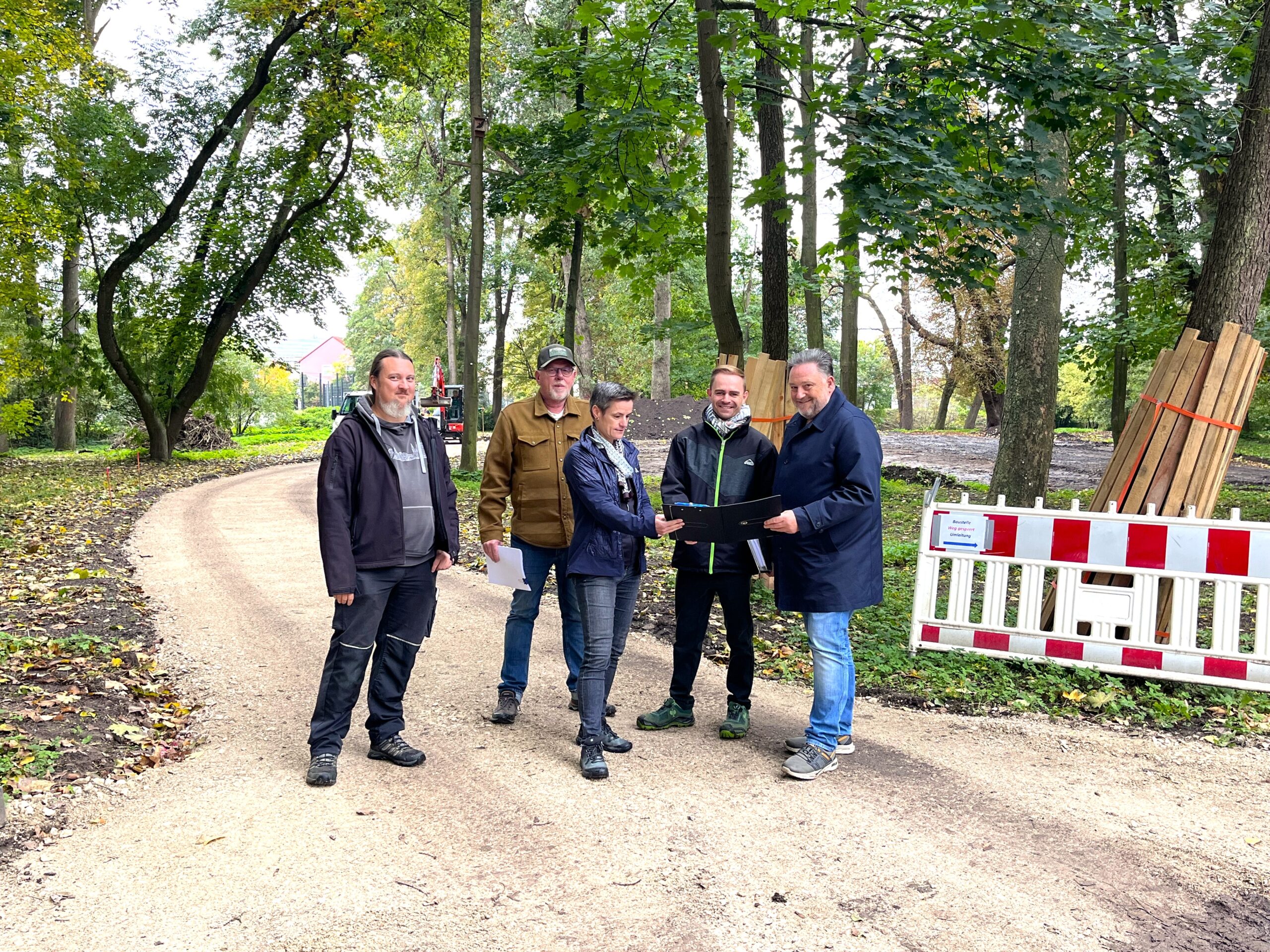 TEUBLITZ; Die Arbeiten im neuen Stadtpark-Areal schreiten planmäßig voran. Anfang Oktober 2025 überzeugte sich auch Bürgermeister Thomas Beer im Rahmen des wöchentlichen Baustellentermins persönlich vom Fortschritt der Maßnahmen.