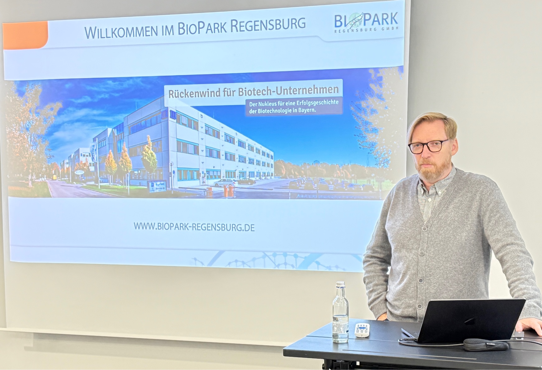 Die Biopark Regensburg GmbH ist eine Clustermanagement-Gesellschaft, die auf dem Gelände der Uni Regensburg ein Technologie- und Gründerzentrum betreibt. Hauptarbeitsfelder sind Biotechnologie, Lebenswissenschaften (Life Sciences) und der Gesundheitswirtschaft (Healthcare industry). Hierzu baut sie das Netzwerk der BioRegio Regensburg sowie das Technologie- und Gründerzentrum stetig aus. In drei Gebäuden arbeiten und forschen Biotechfirmen. „Auf über 18 000 Quadratmeter Fläche sind knapp 40 Firmen mit etwa 700 Mitarbeitenden aktiv“, erklärte Cluster-Manager Hagen und stellte einige davon beispielhaft vor. „Aktuell sind aber in der Biopark Gesellschaft insgesamt 66 Firmen mit rund 5600 Beschäftigten zusammengeschlossen.