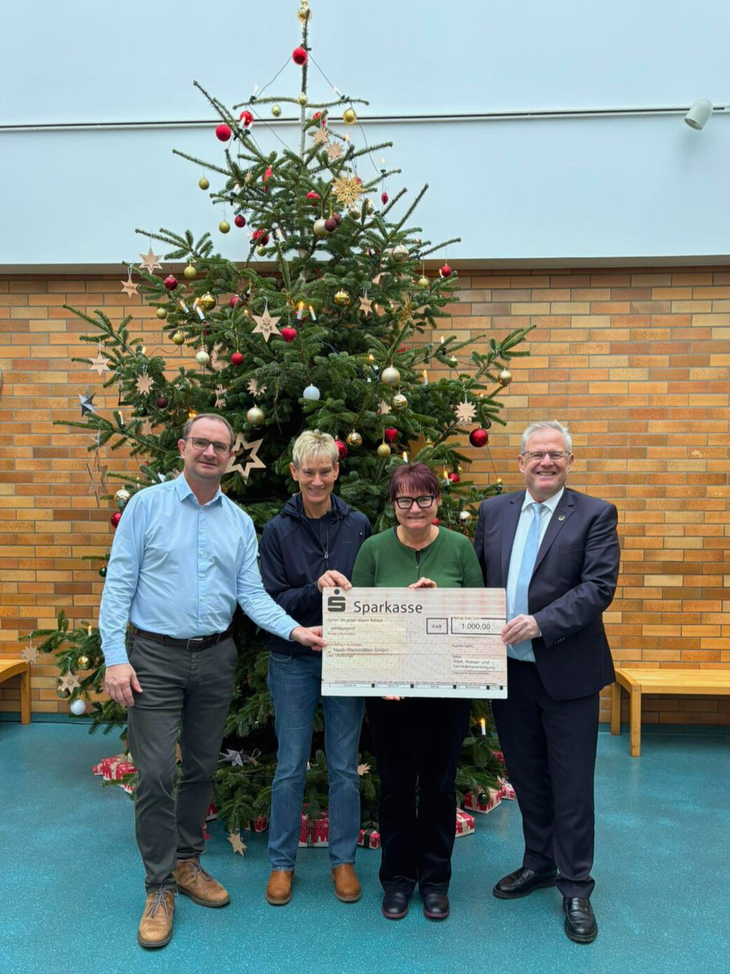 Die Städtische Wasser- und Fernwärmeversorgung Schwandorf (SWFS) hat erneut traditionell kurz vor Weihnachten ein Zeichen für die gute Sache gesetzt: In diesem Jahr dürfen sich die Naab-Werkstätten über eine großzügige Spende von 1.000 Euro freuen. Werkleiter Stefan Trettenbach überreichte den Spendenscheck gemeinsam mit Oberbürgermeister Andreas Feller an Geschäftsleiterin Margit Gerber und Martina Bachl vom Sozialdienst der Einrichtung. Beide bedankten sich herzlich für das vorweihnachtliche Geschenk.
