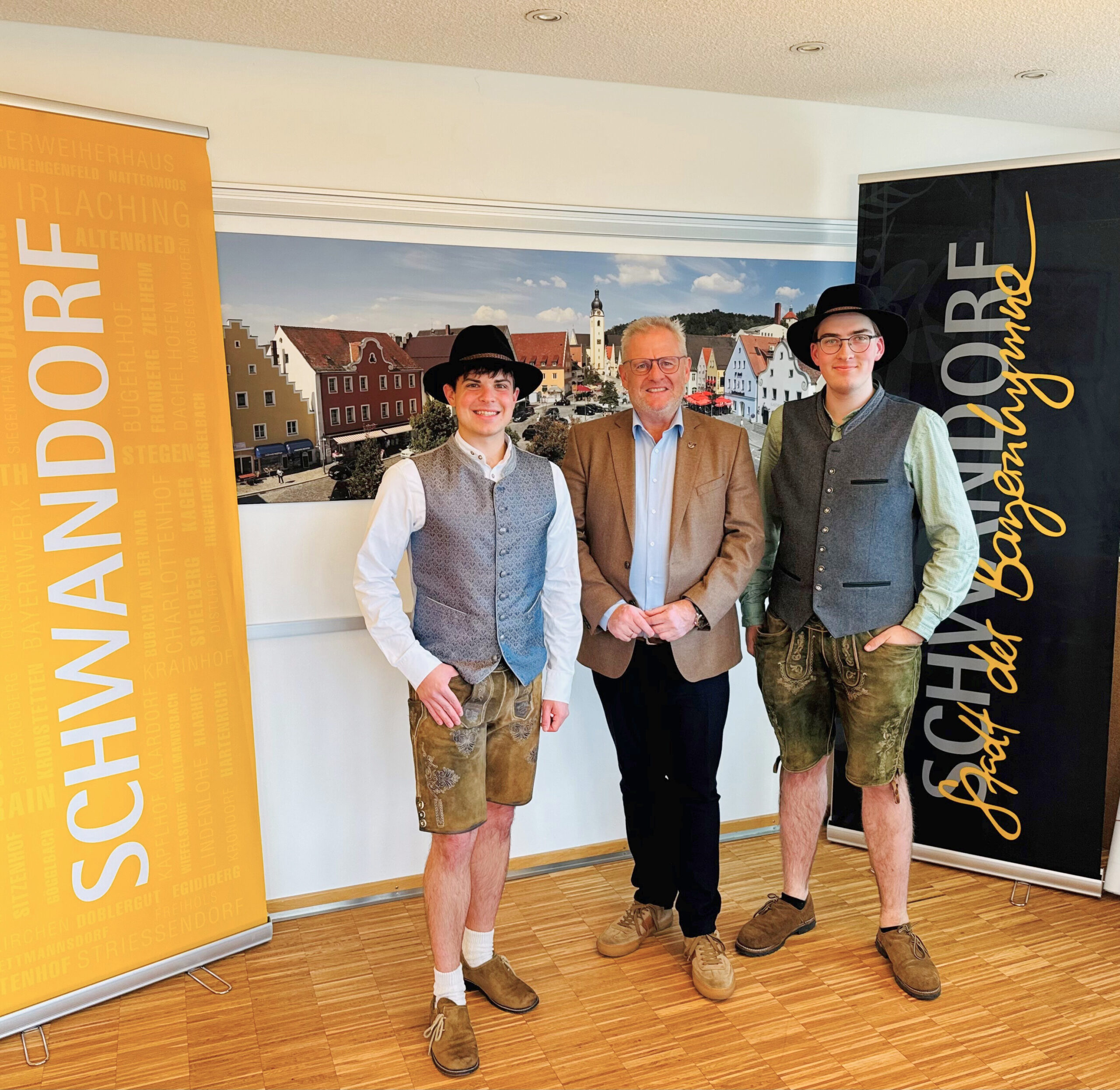 Die Fronberger Kirwa steht vor der Tür – vom 18. bis 20. Oktober 2025 wird in und vor der Brauereiwirtschaft wieder zünftig gefeiert. Die ersten Kirwaburschen Lukas Helm und Jonas von Breidbach sind nun im Schwandorfer Rathaus erschienen und haben Oberbürgermeister Andreas Feller persönlich zur Kirwa eingeladen.