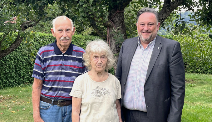 Ein Jubiläum wie die Eiserne Hochzeit bei Familie Nübler ist etwas ganz Besonderes: 65 gemeinsame Ehejahre sind ein seltenes Geschenk, das nur wenigen Paaren vergönnt ist. Auch in Teublitz kommt ein solches Ehejubiläum nicht oft vor. Umso schöner war es, dass Erster Bürgermeister Thomas Beer persönlich vorbeischaute, um die Glückwünsche der Stadt sowie ein Präsent zu überbringen. Gefeiert wurde im Kreis der Familie, die den Jubilaren mit der Lieblingstorte des Ehegatten eine besondere Freude bereitete.
