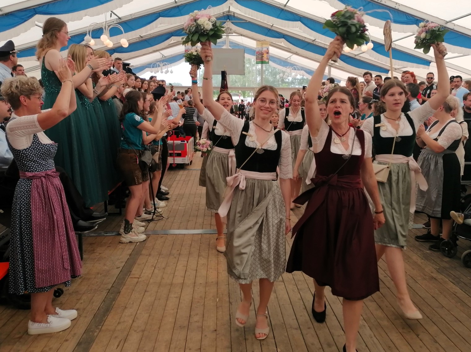 Ab 19:00 Uhr ist dann wieder Party im Festzelt, wenn „d’Urwaidler“ einheizen zur Partynacht bis „´s Zelt z’samkracht“. Auch diese fünf Jungs sind in Erzhäuser längst keine Unbekannten mehr, gaben sie doch schon beim Bürgerfest oder beim Sportlerball des SV Erzhäuser ihre Visitenkarte ab. Der Sonntag beginnt in alle Frühe mit dem Weckruf, dem Einholen der Festmutter, der Festdamen, des Schirmherrn und des Patenvereins. Danach folgt um 9:00 Uhr der Kirchenzug zum Festgottesdienst mit Pfarrer Theo Schmucker beim Gerätehaus in Windmais auf. Nach Frühschoppen und Mittagessen im Festzelt mit der Kapelle „Boarisch-Oberkrain“ marschiert dann ab 14:00 Uhr der Festzug mit über 80 Vereinen und Abordnungen vom Festplatz durch Windmais und wieder zurück, wo man vom Jubelverein empfangen wird. Ab 16:00 Uhr werden „Breznsalzer“ bis zum Festende Vollgas geben. Genügend Parkplätze befinden sich unweit des Festplatzes bei den Straßen „Steigerweg“ und „Scheiderberg“, wobei bei letzterer ein Einbahnstraßenverkehr zu beachten ist.