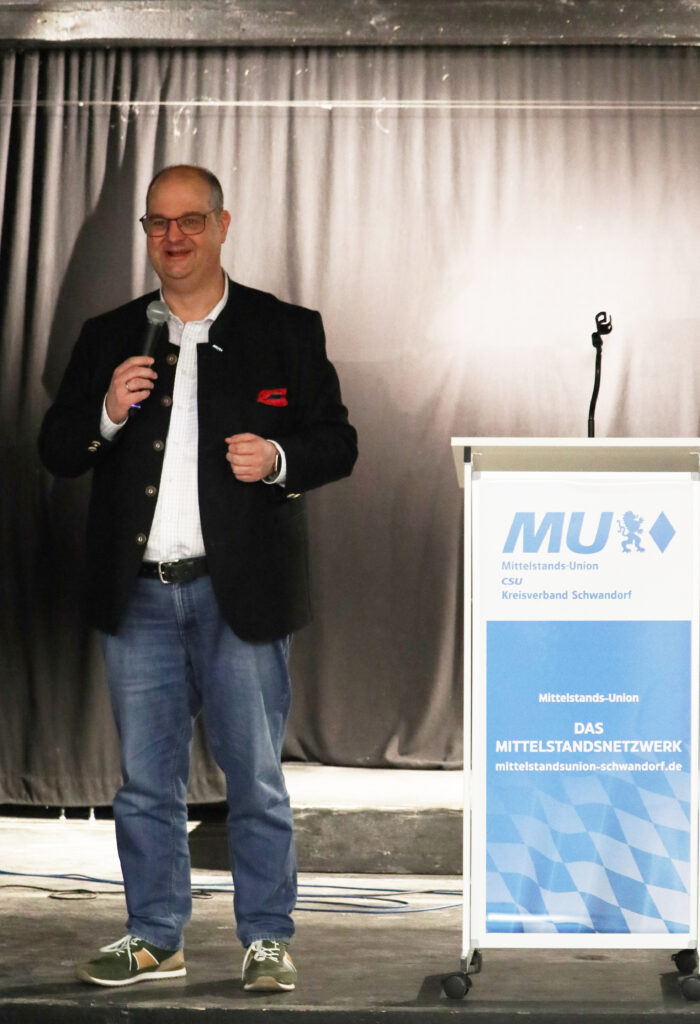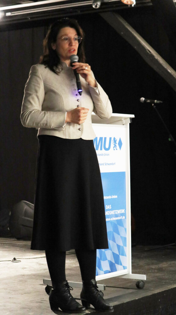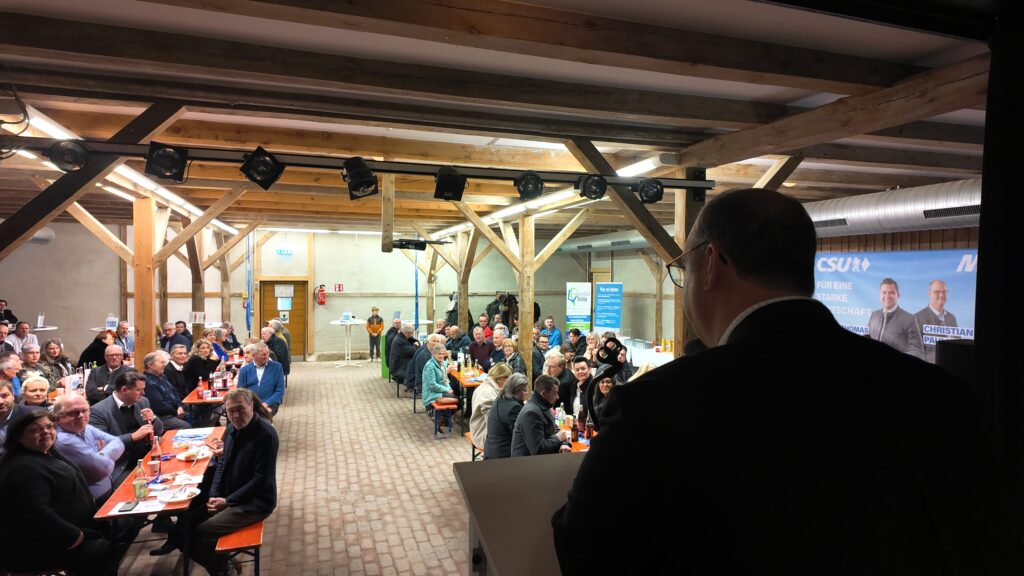 Im Fronberger Sperlstadel hat die Mittelstands-Union (MU) im Landkreis Schwandorf ihren traditionellen Frühschoppen abgehalten. Dabei konnte sich Gastgeber und Organisator Christian Paulus über ein volles Haus mit rund 130 Gästen freuen. Unter den Besuchern hatten sich auch zahlreiche politische Vertreter eingefunden. Neben der parlamentarischen Staatssekretärin im Bundeslandwirtschaftsministerium, MdB Martina Englhardt-Kopf und dem örtlichen Stimmkreisabgeordneten im Bayerischen Landtag, Alexander Flierl, zählten Landrat Thomas Ebeling, die Bürgermeister Frank Zeitler (Nabburg), Thomas Falter (Wackersdorf), Martin Birner (Neunburg v. W.) und Georg Hoffmann (Bodenwöhr) zu den Gästen, ebenso wie zahlreiche Kandidaten für die örtlichen kommunalen Gremien und den Kreistag.