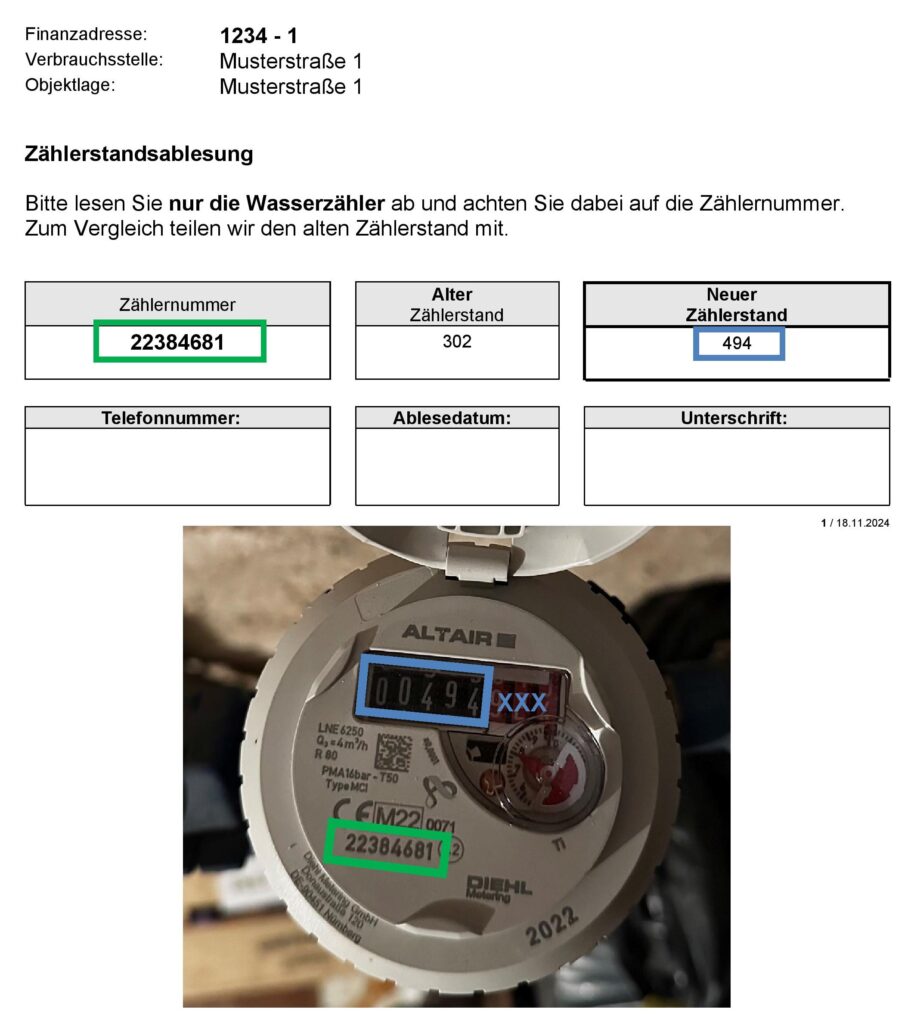 TEUBLITZ. Die Mitteilung des Zählerstands für die Wasserabrechnung ist auch dieses Jahr wieder ab Zustellung der Ablesebriefe möglich. Die Briefe werden Mitte November 2025 versandt und zugestellt. Eine Meldung ist dann vom 17.11. bis 30.11.2025 online und auch per Rücksendeformular möglich.