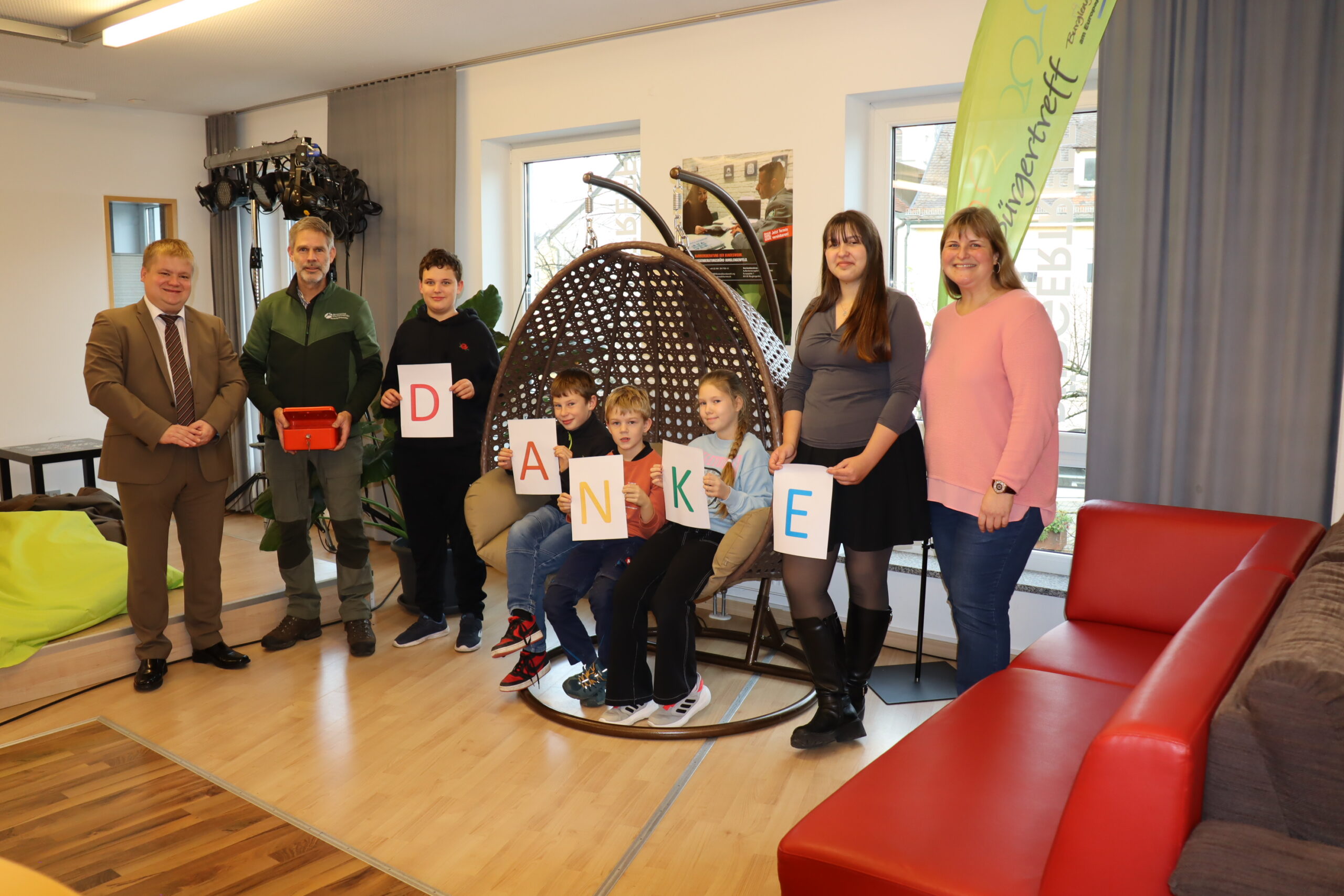 Bürgermeister Thomas Gesche und Jugendpflegerin Ines Wollny bedankten sich herzlich beim Forstbetrieb Burglengenfeld für die großzügige Unterstützung und betonten die Bedeutung der Spende für die offene Kinder- und Jugendarbeit in der Stadt.