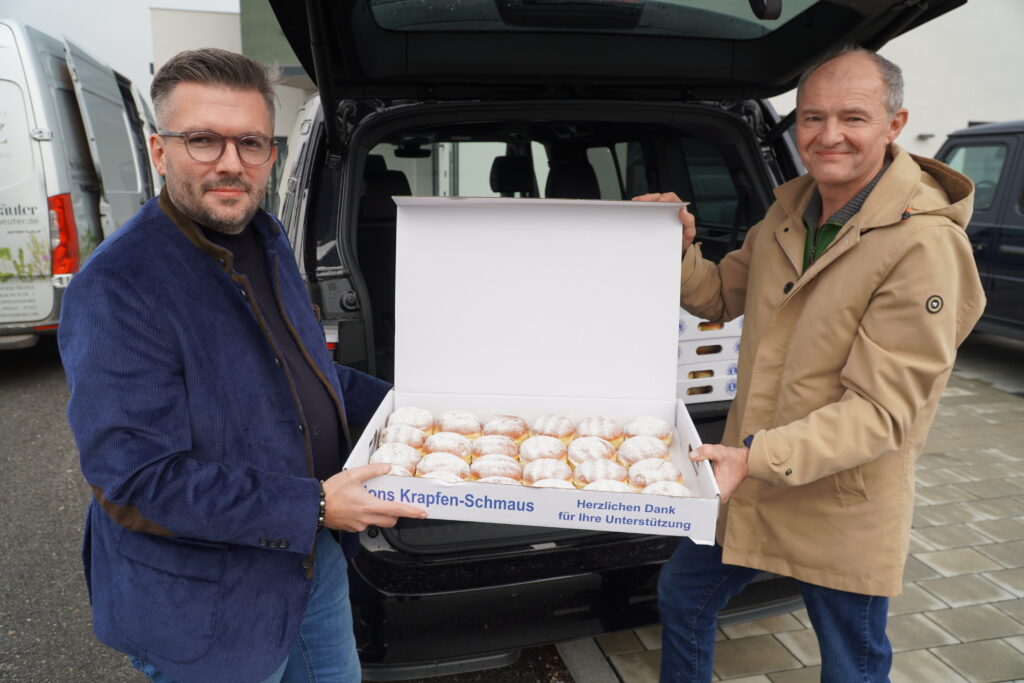 In Schwandorf hat der Unternehmer Matthias Simmel mit 600 Krapfen eine Großbestellung geordert, die vom Schwandorfer Lion’s-Präsidenten Alexander Heinz pünktlich vor Faschingsbeginn geliefert wurden. Gemeinsam ging es dann zu den Naabwerkstätten, deren Mitarbeiter die köstlichen Krapfen schließlich genießen durften. „Es erfüllt einen schon mit Glück, wenn man sieht, welche Freude man mit dieser Krapfenaktion hervorrufen kann“, sagte Simmel nach der Übergabe. Als Schwandorfer Unternehmer sei es für ihn selbstverständlich, seinen Teil zum Wohlergehen der Menschen vor Ort beizusteuern, hieß es weiter. Bereits in der Vergangenheit hatte sich Simmel für wohltätige Zwecke wie etwa dem Regensburger Weihnachtssingen in der Donau-Arena oder auch für kulturelle Veranstaltungen wie dem Zelt- und Kulturfestival Schwandorf oder in Schwarzenfeld engagiert.