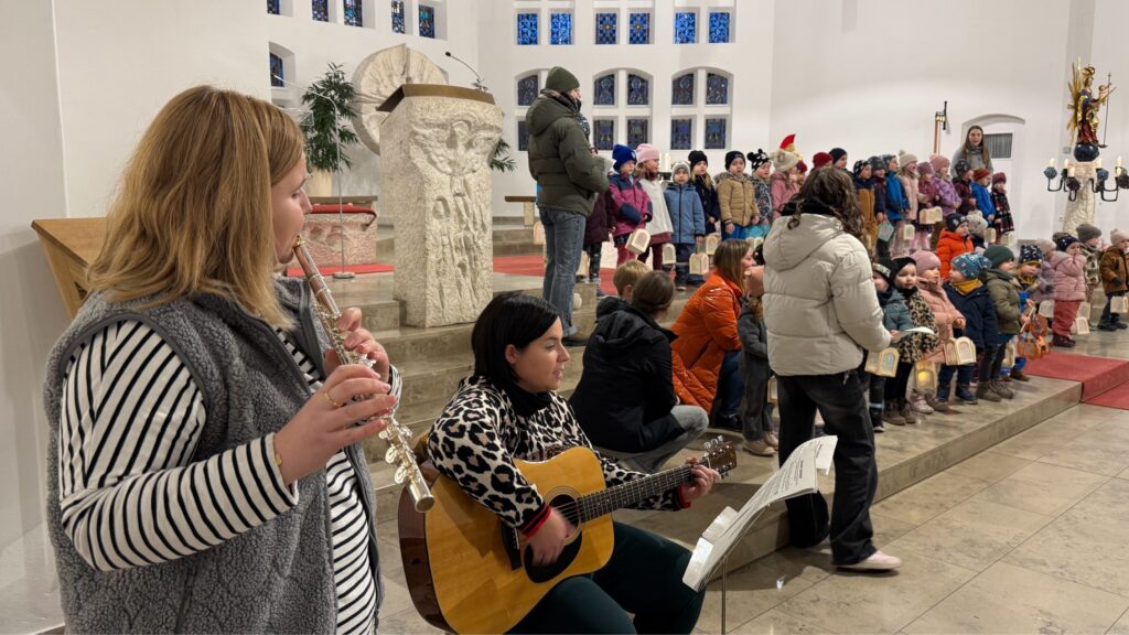 Zur Eröffnung spielten Julia Eisenreich (Klarinette) und Katrin Eichinger (Gitarre) das Lied „Laternenzeit“ und sorgten damit für einen musikalischen und zugleich besinnlichen Auftakt. Im Mittelpunkt stand die Geschichte des heiligen Martin, in Erinnerung an den Bischof Martin von Tours, der als römischer Soldat seinen warmen Mantel mit einem frierenden Bettler teilte. Er gilt bis heute als Schutzpatron der Armen.