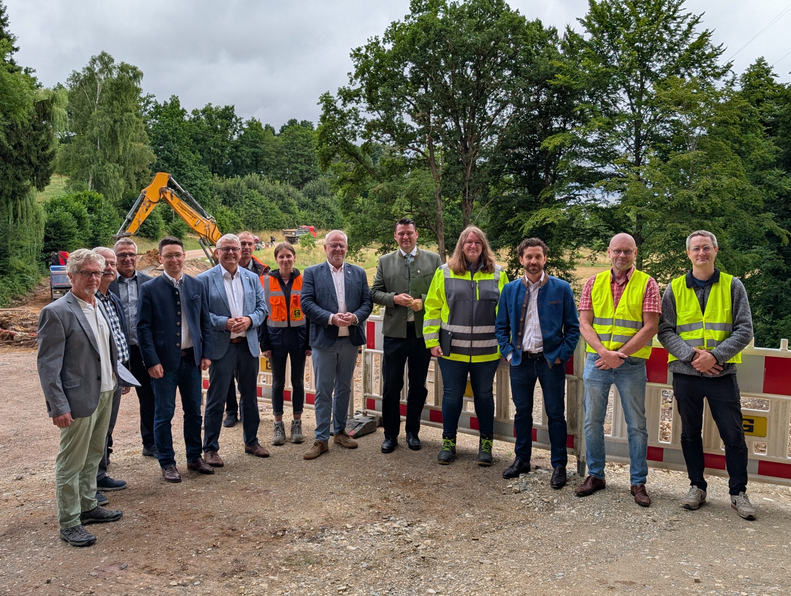 Am Montag, den 7. Juli lud das Landratsamt Schwandorf zum gemeinsamen Pressetermin, samt Baustellenbesichtigung ein. Nach den Grußworten durch Landrat Thomas Ebeling und Schwandorfs Oberbürgermeister Andreas Feller erläuterte der ‚Sachgebietsleiter Tiefbau‘ im Landratsamt, Herr Witt, die technischen Gegebenheiten. Die betreffende Stelle in der „Schwabkurve“ muss tiefgreifend erneuert und verbreitert werden. Zunächst wird die Fahrbahnbreite auf 6 Meter erhöht und im Ausbaubereich, mit einem Kurvenradius von 99 Metern, erfolgt eine Aufweitung um einen weiteren Meter. Der Grund wurde bis zu 14 Meter erkundet, wird bis zu 7 Meter abgetragen und später verdichtet wieder eingebunden. Bis zu 4.500 Kubikmeter Erde müssen dafür bewegt und emissionsarm, also ortsnah, zwischengelagert werden. Die Bauvorhaben obliegen dabei der Firma Guggenberger, vertreten durch die Bauleiterin Stiersdorfer und Herrn Emperhoff. Vertreten war ebenso die Regierung der Oberpfalz, durch die Herren Hauser und Reinhardt. Die Gesamtkosten des Vorhabens, das bis Ende Oktober abgeschlossen sein soll, belaufen sich auf ca. 850.000 Euro (bei 53 % Fördersatz durch die Regierung).