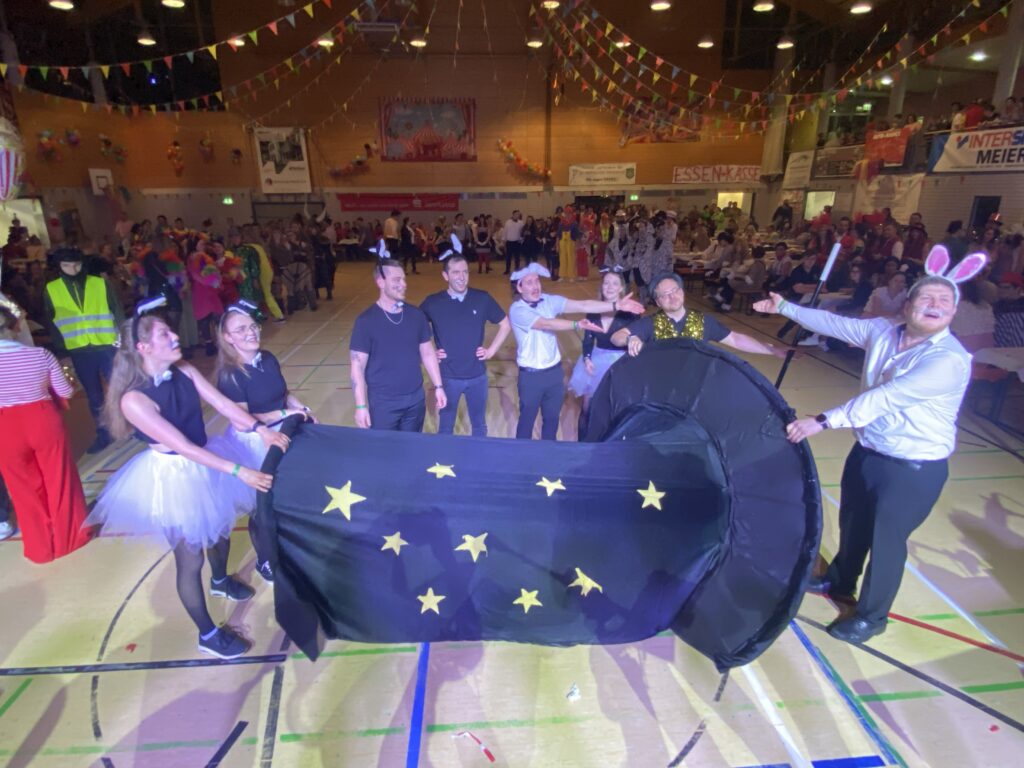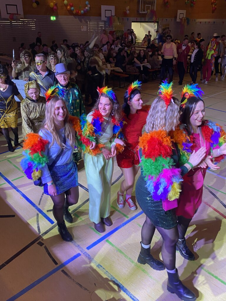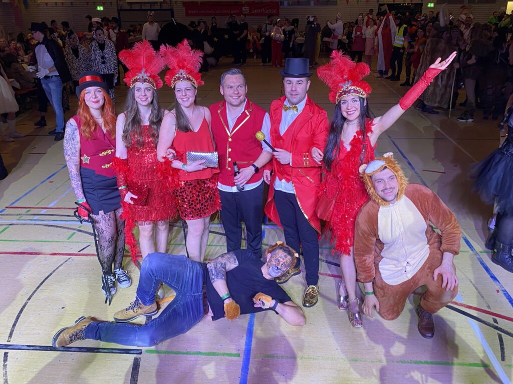In diesem Jahr stand der Ball unter dem Motto „Manege frei für den Ball unter der Zirkuskuppel“. SV-Chef Georg Lehner im roten Zirkusdirektor-Frack mit Zylinder und Bürgermeister Georg Hoffmann, der sich vom Kommunalwahlkampf frei nahm, im blauen Zirkusdirektor-Frack, ebenfalls mit Zylinder, konnten wiederum unzählige Besucher, die dem Motto entsprechend verkleidet waren, in der mit zahlreichen Zirkusmotiven dekorierten Hammerseehalle begrüßen. Dann ging es auch schon los, die vier „Stoapfälzer Spitzbuam“, die beim SV Erzhäuser beileibe keine Unbekannten sind, da sie am Samstag zum 21. Male bei einem SV-Faschingsball und darüber hinaus auch schon beim Bürgerfest spielten, forderten zum Tanz und „mischten dem bunten Partyvolk gehörig auf“. Mit ihrem mitreißenden Sound lockten die vier „Schelme“ die Tanzfreunde bald in Scharen auf die herrlich große Tanzfläche, welche dann so schnell nicht mehr verlassen werden konnte, da die „Spitzbuam“ immer noch einen Hit draufsetzten. Erst ein gemütlicher Walzer, ein schnulziger „Hosentürlwetzer“, dann ein pfiffiger Bayrischer, eine flotte Polka, ein rockiges „Rock over the World“, für jeden war etwas dabei. Und für die, die überhaupt nicht genug bekommen konnten, gab’s die nicht mehr so Neue Deutsche Welle, einen Blues, etwas Countrymusik oder Jazz, Pop, Rock’n Roll und einen zünftig urigen Alpensound, die riesige Tanzfläche war stets gut gefüllt.
