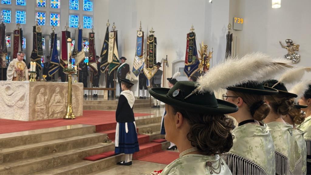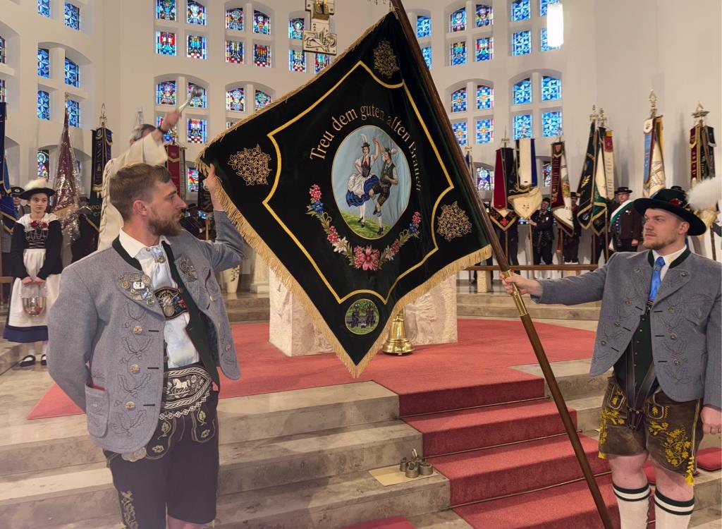 In geschlossenem Zug marschierte die Festgemeinschaft, musikalisch angeführt von der Neukirchener Blaskapelle „St. Martin“, zum Marktplatz. In der Pfarrkirche St. Stephanus zelebrierte Pfarrer Werner Sulzer einen feierlichen Gottesdienst, der vom Kirchenchor stimmungsvoll umrahmt wurde. Einen besonderen Höhepunkt bildete die Segnung der neuen Vereinsfahne sowie der Fahnenbänder. Im Anschluss zogen die Trachtler in ihren festlichen Gewändern gemeinsam mit den Ehrengästen sowie Vertretern des Bayerischen Trachtenverbandes und des Oberpfälzer Gauverbandes weiter zum Festzelt. Ein kräftiger Regenschauer kurz vor dem Ziel konnte die ausgezeichnete Stimmung jedoch nicht trüben.