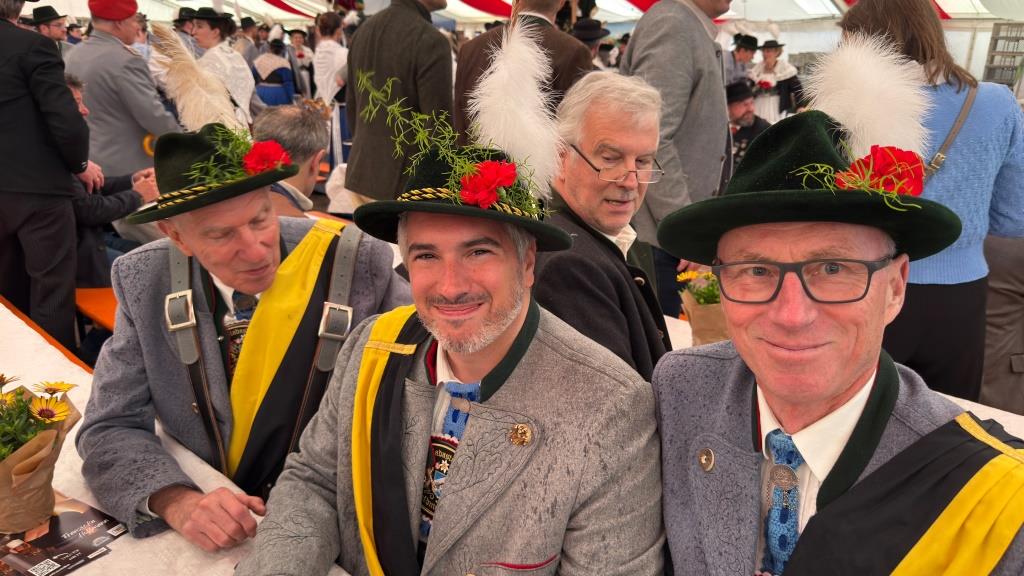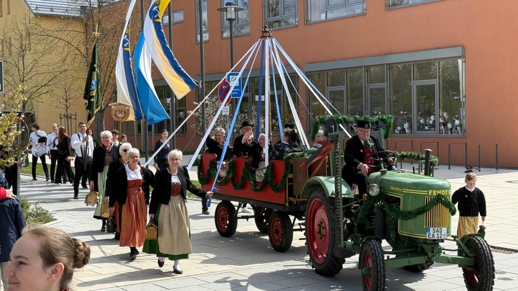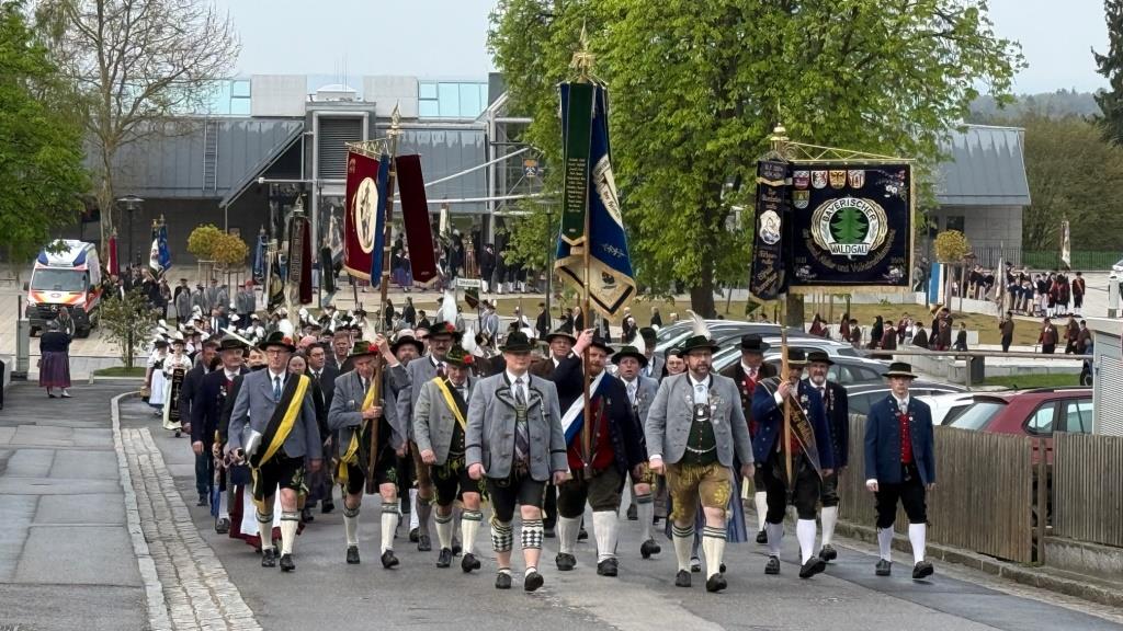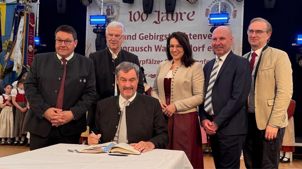 Bereits kurz nach dem Einmarsch der Vereine kündigte der Bayerische Defiliermarsch den Besuch des Bayerischen Ministerpräsidenten Markus Söder an. In seiner Ansprache würdigte er insbesondere die Pflege von Tradition und das herausragende ehrenamtliche Engagement: „Ihr Trachtler steht für die Identität Bayerns und bekennt euch eindrucksvoll zur Heimat“, betonte der Ehrengast. Neben den Grußworten zählte auch der Eintrag in das Goldene Buch der Gemeinde zu den offiziellen Höhepunkten. Glückwünsche zum Jubiläum überbrachten neben dem Ministerpräsidenten auch Bürgermeister Thomas Falter, der Landesvorsitzende des Bayerischen Trachtenverbandes Günter Frey mit seinem Stellvertreter Erich Tahedl, der Landesjugendvertreter Armin Schmid sowie der erste Gauvorstand des Gauverbandes Oberpfalz, Peter Fink. Weitere Gratulanten waren die Bundestagsabgeordnete Martina Engelhardt-Kopf, die Landtagsabgeordneten Martin Scharf und Alexander Flierl sowie die stellvertretende Landrätin Birgit Höcherl.