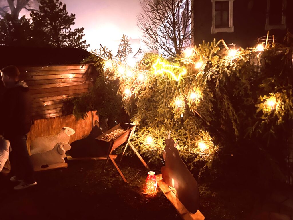 Im Schein von Feuerschalen und einer wunderschönen Krippennachbildung fand der Ausklang des Abends im St. Clemenshausgarten statt. Für das leibliche Wohl war bestens gesorgt. Aufgrund der großen Teilnahme und der positiven Resonanz will die Kolpingsfamilie das neue Konzept rund um die Pfarrkirche St. Leonhard im nächsten Jahr wiederholen.
