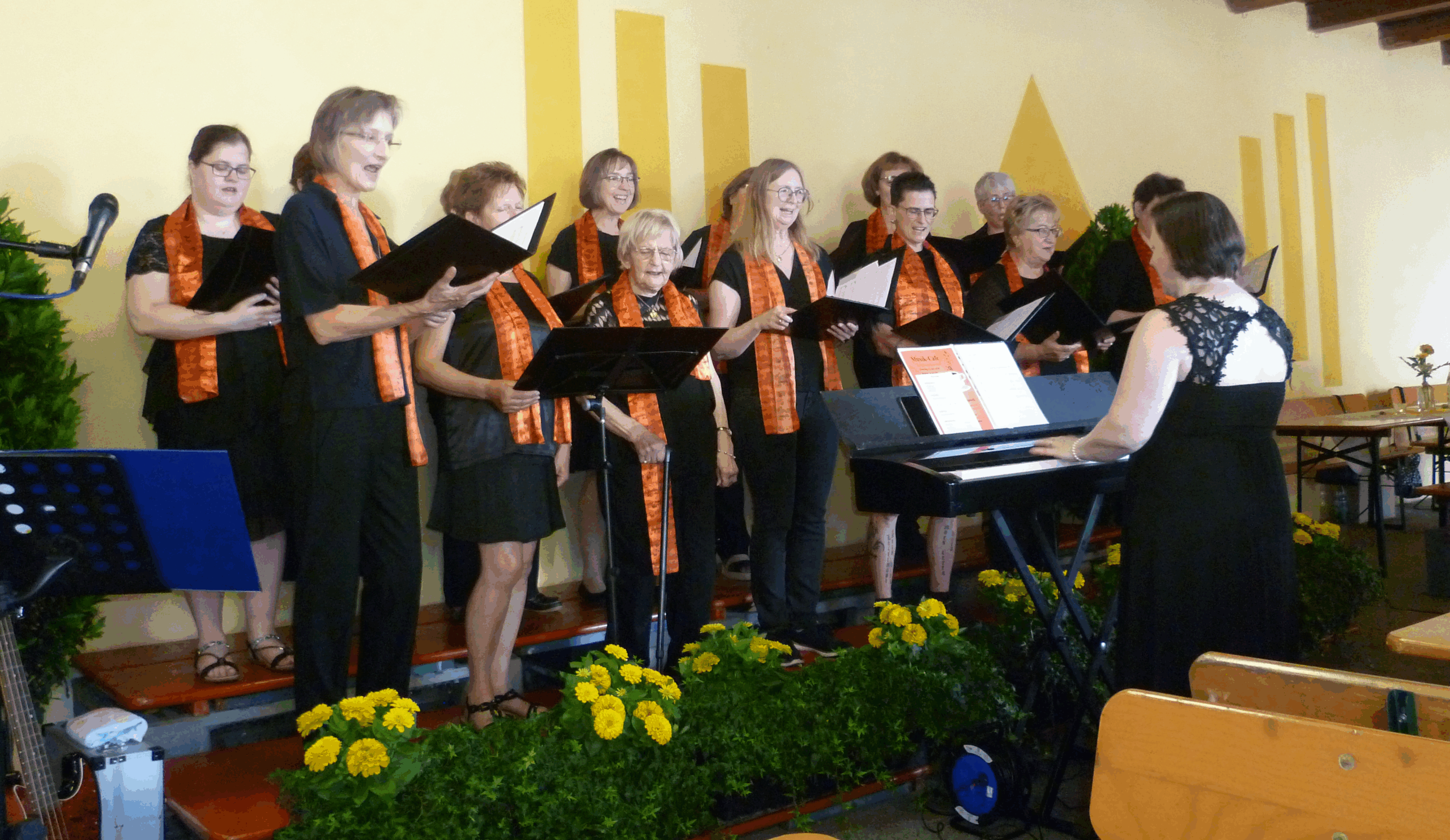 Der Liederkreis Steinberg und die Band „Faltenrock“ sorgten im Steinberger Ortsteil Oder vor zahlreichen Besuchern für einen sehr unterhaltsamen und abwechslungsreichen Nachmittag. Die Vorsitzende des Liederkreises Sigrid Hochmuth freute sich über ein applausfreudiges Publikum, unter ihnen Pfarrer Werner Sulzer und 2.Bürgermeister Christian Meßmann.. Bei Kaffee und Kuchen oder einem kühlen Getränk genossen die Zuhörer zunächst die Darbietungen des Liederkreises unter der Leitung von Michaela Kangler-Lang, die auch durch die musikalische Zeitreise des Rockn Rolls und der Schlager führte. Und so begann das Konzert gleich fetzig mit „Let`s twist again“. Die Band „Faltenrock“ mit ihrem Leader Harry Hirschberger entführte in die 50er- bis 70er-Jahre. Langanhaltender Beifall mit Zugaben entlohnte die Musiker und Sänger, wobei der Liederkreis für sangesfreudige Frauen und Männer warb. Die Proben finden jeden Freitag um 18:00 Uhr in der Grundschule statt. Vorherige Anmeldung ist nicht erforderlich.