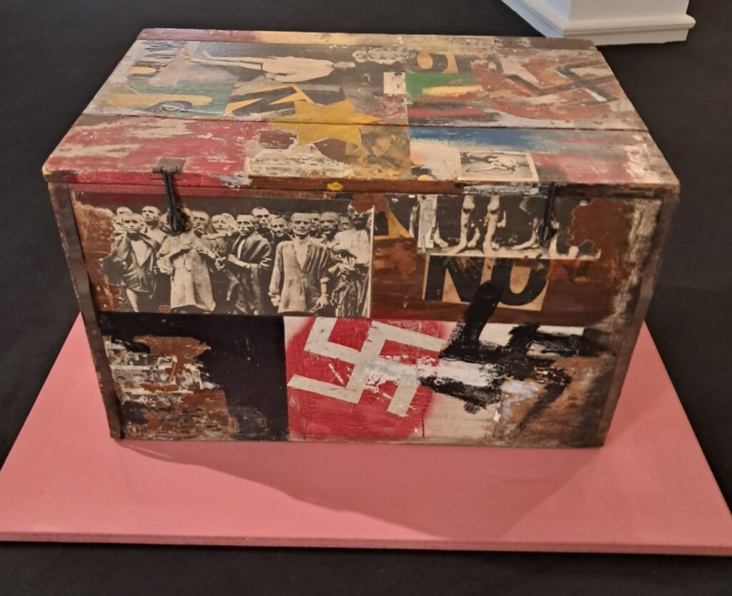 Stephanie Stebich, Direktorin der Boris Lurie Art Foundation und angesehene Museumsexpertin, gab dann eine ausführliche Einführung und Leben und Werk von Boris Luriew. No!art ist eine avantgardistische Anti- Kunst-Bewegung, die 1959 in New York City begann und gegen jede Kommerzialisierung war und ist. Ihr Mitbegründer war Boris Lurie, der 1924 in Leningrad geboren wurde und 2008 in New York starb. 1941 wurde die Familie im Ghetto von Riga interniert. Seine Mutter, seine Großmutter, seine Schwester und seine Jugendliebe wurden im selben Jahr bei einem Massaker von der SS ermordet. Zusammen mit seinem Vater überlebte Boris die Zwangsarbeit und wurde 1945 vom amerikanischen Soldaten aus dem Außenlager Magdeburg-Polten befreit. Er emigrierte nach New York City und bewunderte sich selbst als „privilegierten Überlebenden“ und sah sich nie in der Rolle des Opfers. Hier verarbeitete er seine Erfahrungen von Verfolgung, Internierung und Lagerhaft künstlerisch. Trotz der schrecklichen Erlebnisse stand er nie grundsätzlich Deutschland ablehnend gegenüber, nannte Deutsch seine “zweite Muttersprache“ und zog sogar in Erwähnung, nach Berlin umzusiedeln. Der Widerstand gegen die Kommerzialisierung von Kunst zeigte sich bei ihm konsequent in seiner Weigerung, seine Werke zu verkaufen.