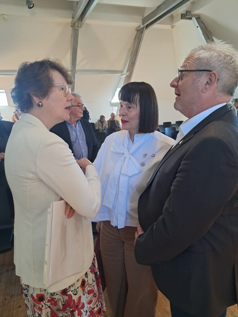 Oberbürgermeister Andreas Feller, der auch Jakob Scharf bei seinem letzten offiziellen Auftritt als stellvertretender Landrat begrüßte, zeigte kurz die einzelnen Baumaßnahmen seit Juli 2025 auf, wobei ab sofort vor allem eine Barrierefreiheit gewährleistet ist. Jürgen Dehm, der Leiter des Künstlerhauses, nannte die Kebbelvilla einen „Platz für alle“ mit herausragenden Positionen regionaler und internationaler Kunst. Er verwies auch auf die derzeitigen Stipendiaten Radka Bodzewicz und Martin Mrkva, die seit Anfang April zu Gast sind in Schwandorf und Einblick in ihre neuesten Arbeiten geben.