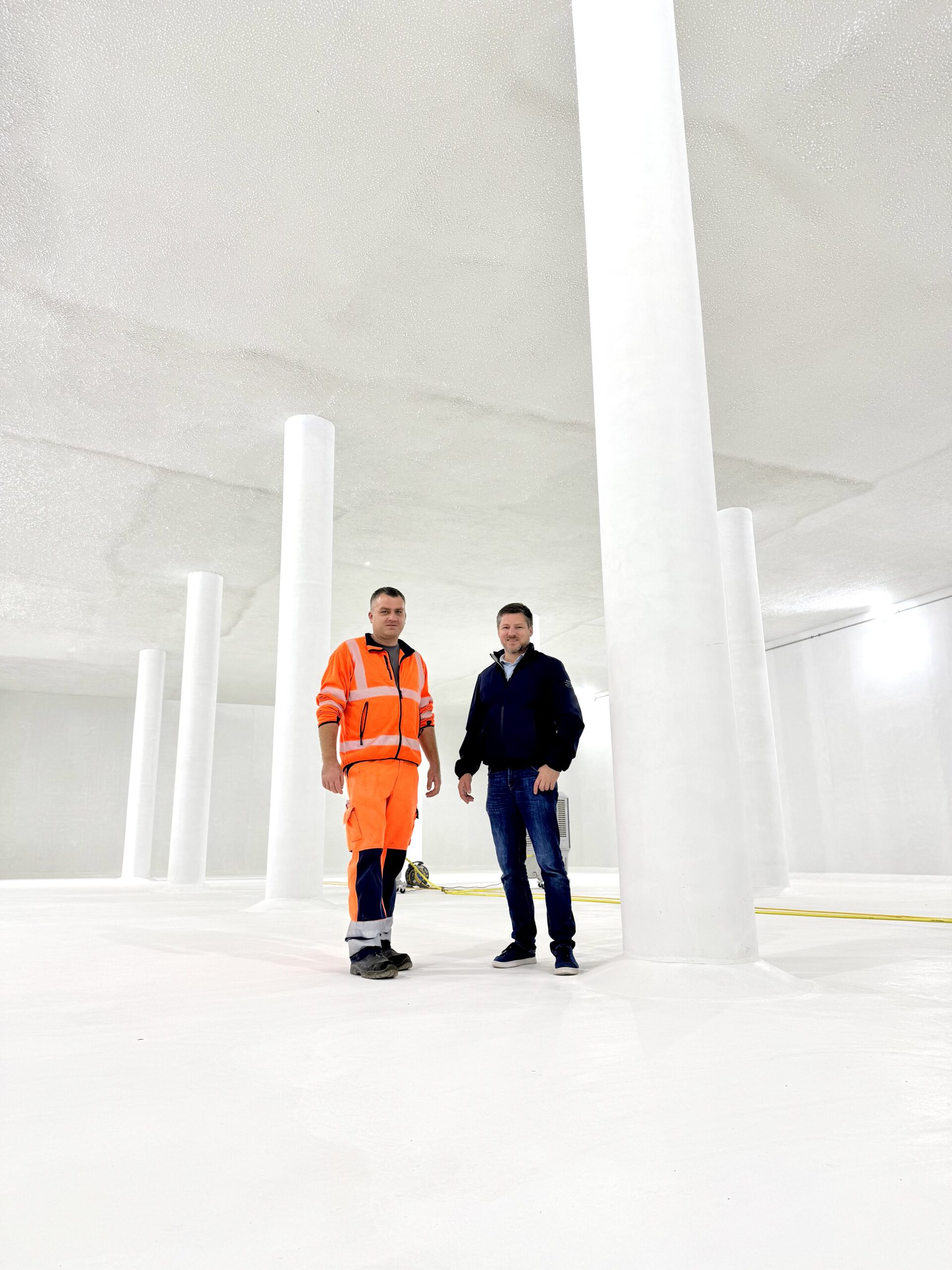 Bürgermeister Peter Neumeier (r.) und Wasserwerk-Chef Thomas Schramm verschafften sich vor Kurzem vor Ort wieder ein Bild vom Baufortschritt. Diese Kammer wird bald bis unter die Decke mit Trinkwasser gefüllt sein. Fotos: Tobias Reitmeier