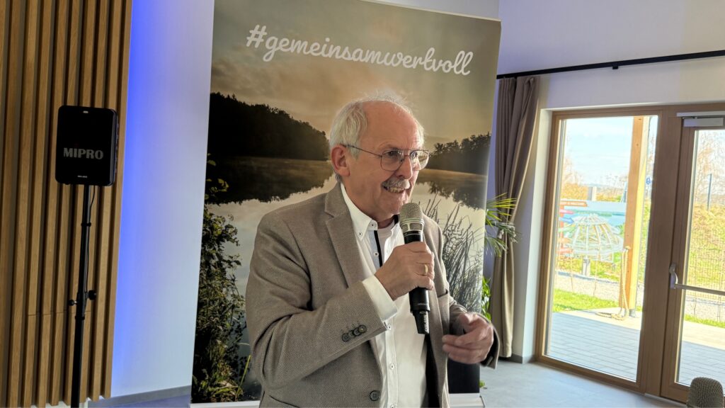 In seinem Grußwort blickte der scheidende Bürgermeister Harald Bemmerl auf die Entwicklung der vergangenen zwölf Jahre zurück. Mit seinem Amtsantritt sei das Ziel formuliert worden, die Gemeinde mit dem Tourismus am Steinberger See als zweitem wirtschaftlichen Standbein zu stärken. Ein bedeutender Meilenstein sei dabei die Eröffnung der Erlebnisholzkugel am 1. April 2019 gewesen, an der unter anderem Ministerpräsident Markus Söder und Heimatminister Albert Füracker teilnahmen. „Der Steinberger See hat sich inzwischen zum Herzen des Oberpfälzer Seenlands entwickelt. Statt anfangs rund 20.000 Besucherinnen und Besuchern kommen heute etwa 300.000 Gäste pro Jahr“, so Bemmerl. Der neuen Geschäftsstelle wünschte er viel Erfolg für die Zukunft.