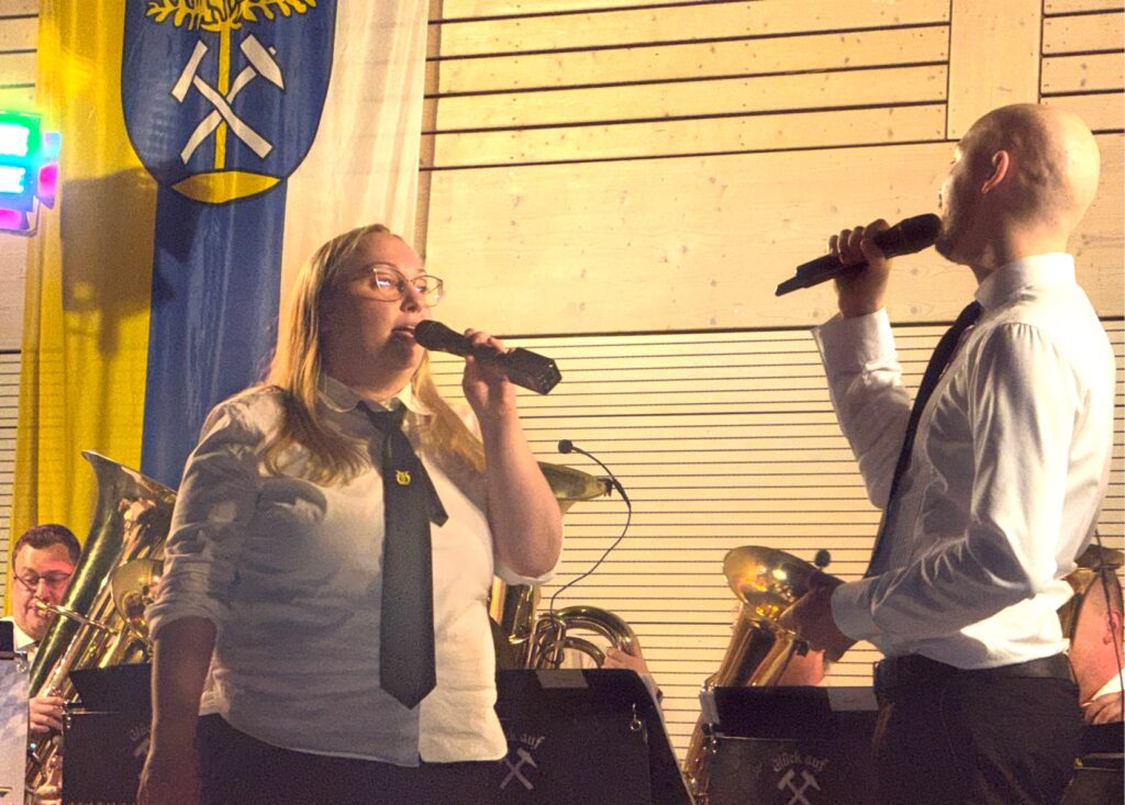 Mit kräftigem Applaus wurden im Anschluss die Musiker der Bergmannskapelle sowie ihr Dirigent Andreas Königsberger begrüßt. Mit dem Marsch „Start frei“ von Ernst Mosch eröffneten die 24 Musikanten das Osterkonzert. Im weiteren Verlauf wechselten sich Walzer, Polkas und Märsche mit modernen Stücken ab. Das Gesangsduo Anne Zitzler und Josef Lobenhofer begeisterte das Publikum unter anderem mit „Böhmische Mädchen sind Klasse“ und den „Rauschenden Birken“. Großen Beifall erhielten zudem die Polka „Caroline“ sowie „Reinsberger Nächte“. Mit dem Tenorhorn-Solo „Dahoam“ setzte Johannes Maier einen weiteren Glanzpunkt. Mit der schwungvollen Polka „Unsere Reise“ und zwei Zugaben endete ein abwechslungsreicher Konzertabend – traditionell beschlossen mit dem Steiger-Marsch.