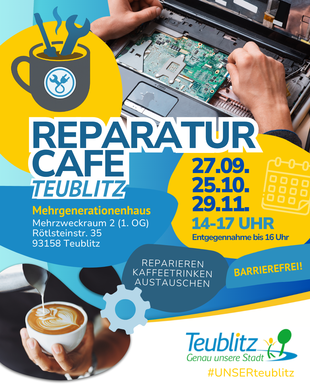 Nach zwei erfolgreichen Veranstaltungen im Juni und Juli öffnet das Reparatur-Café Teublitz auch im Herbst wieder seine Türen. Alle Bürgerinnen und Bürger sind herzlich eingeladen, mit ihren defekten Alltagsgegenständen vorbeizukommen und diese gemeinsam mit ehrenamtlichen Helferinnen und Helfern zu reparieren.