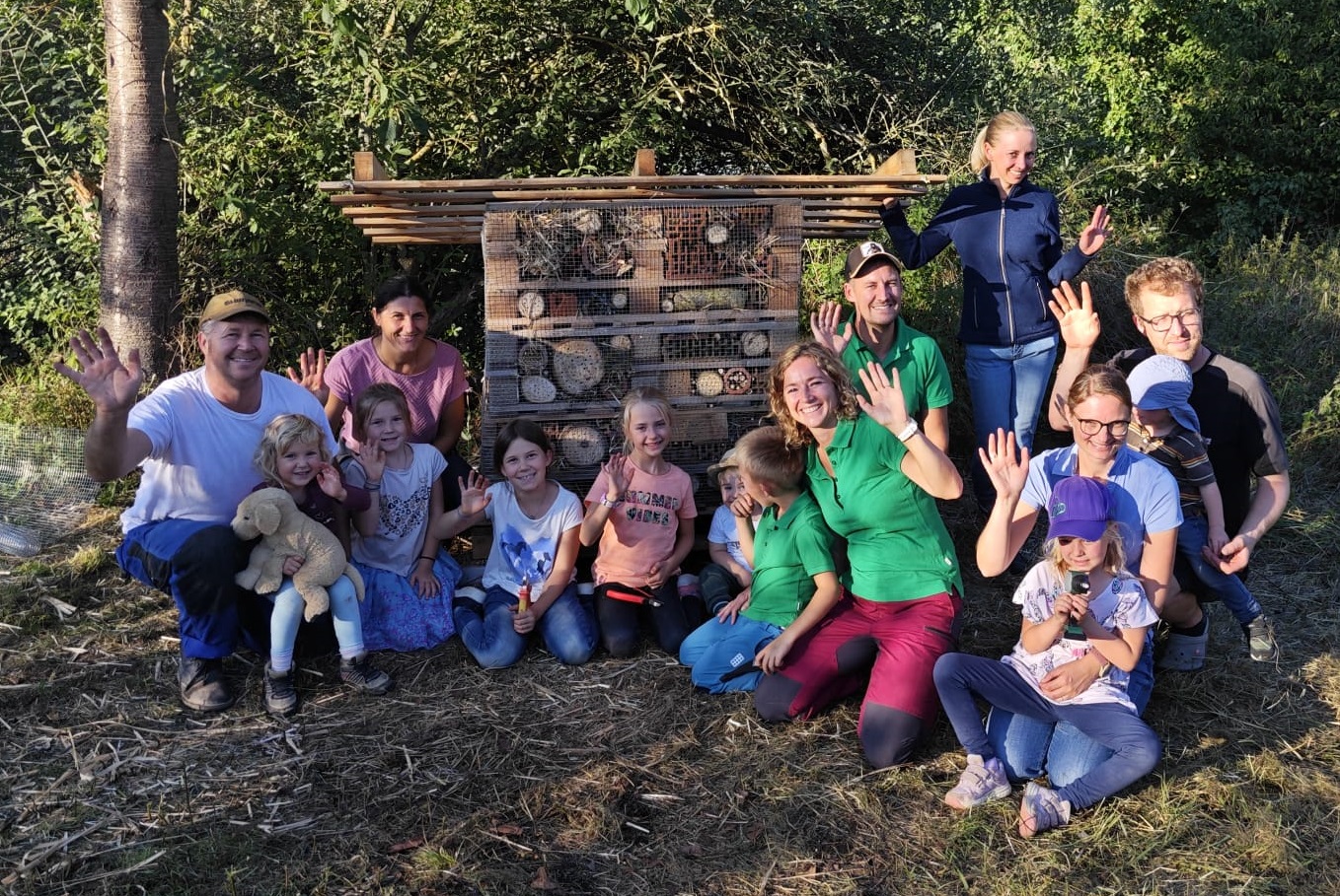 Nach einem langen Nachmittag mit viel Arbeit und Fleiß bestaunte man das Insektenhotel und genoß bei Stockbrot und Kartoffelfeuer die Abendsonne. Foto: Sebastian Namyslo