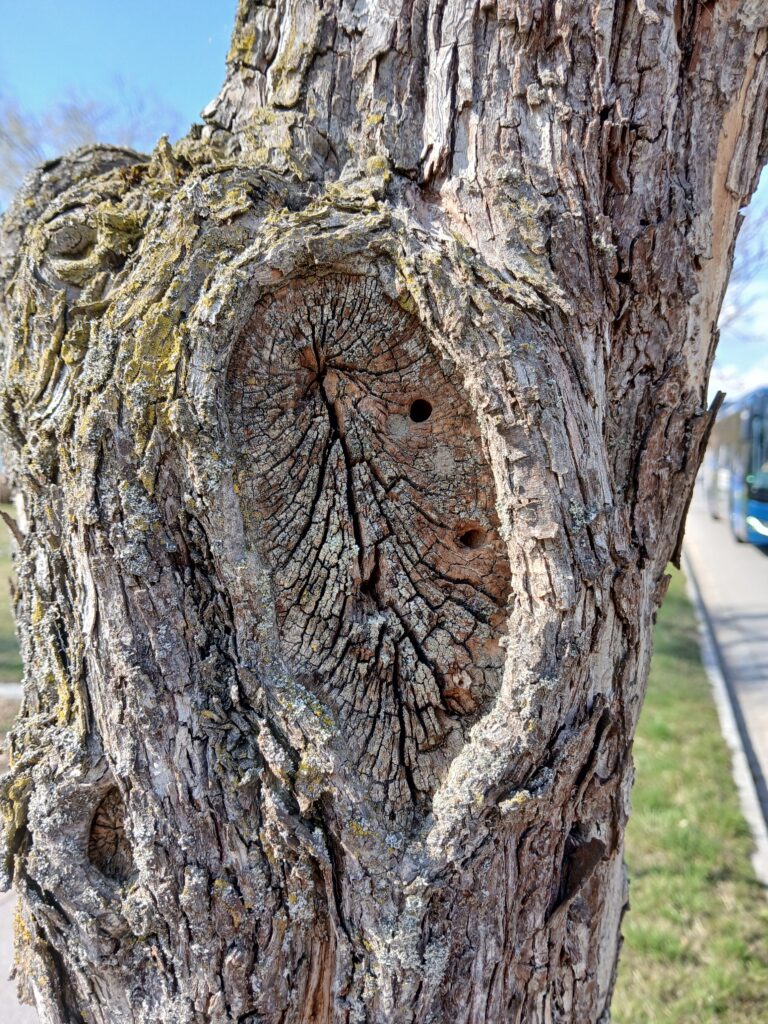 Typische Bohrlöcher weisen auf den Befall durch den Obstbaumsplintkäfer hin.