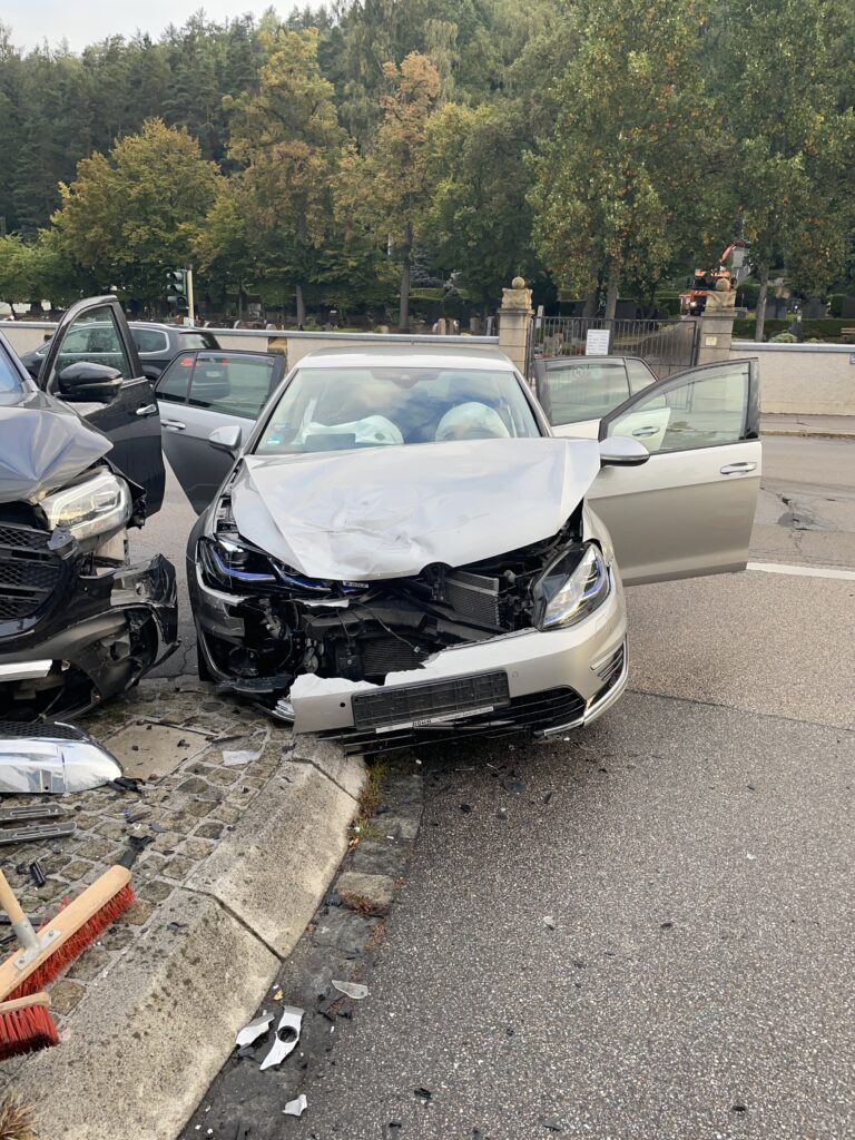 Am Dienstag gegen 07:45 Uhr wollte eine 18-jährige Rumänin aus Schwandorf in Schwandorf von der Wackersdorfer Straße in die Hoher-Bogen-Straße abbiegen. Dabei übersah die Schülerin mit ihrem VW Golf einen entgegenkommenden Mercedes, an dessen Steuer ein 63-jähriger Albaner saß. Infolge der Unachtsamkeit der Golf-Fahrerin kam es zu einem heftigen Zusammenstoß, bei dem der selbstständige Mercedes-Fahrer leicht verletzt wurde. Beide Autos waren nicht mehr fahrbereit und mussten abgeschleppt werden. Insgesamt entstand ein Sachschaden in Höhe von rund 30.000 Euro.