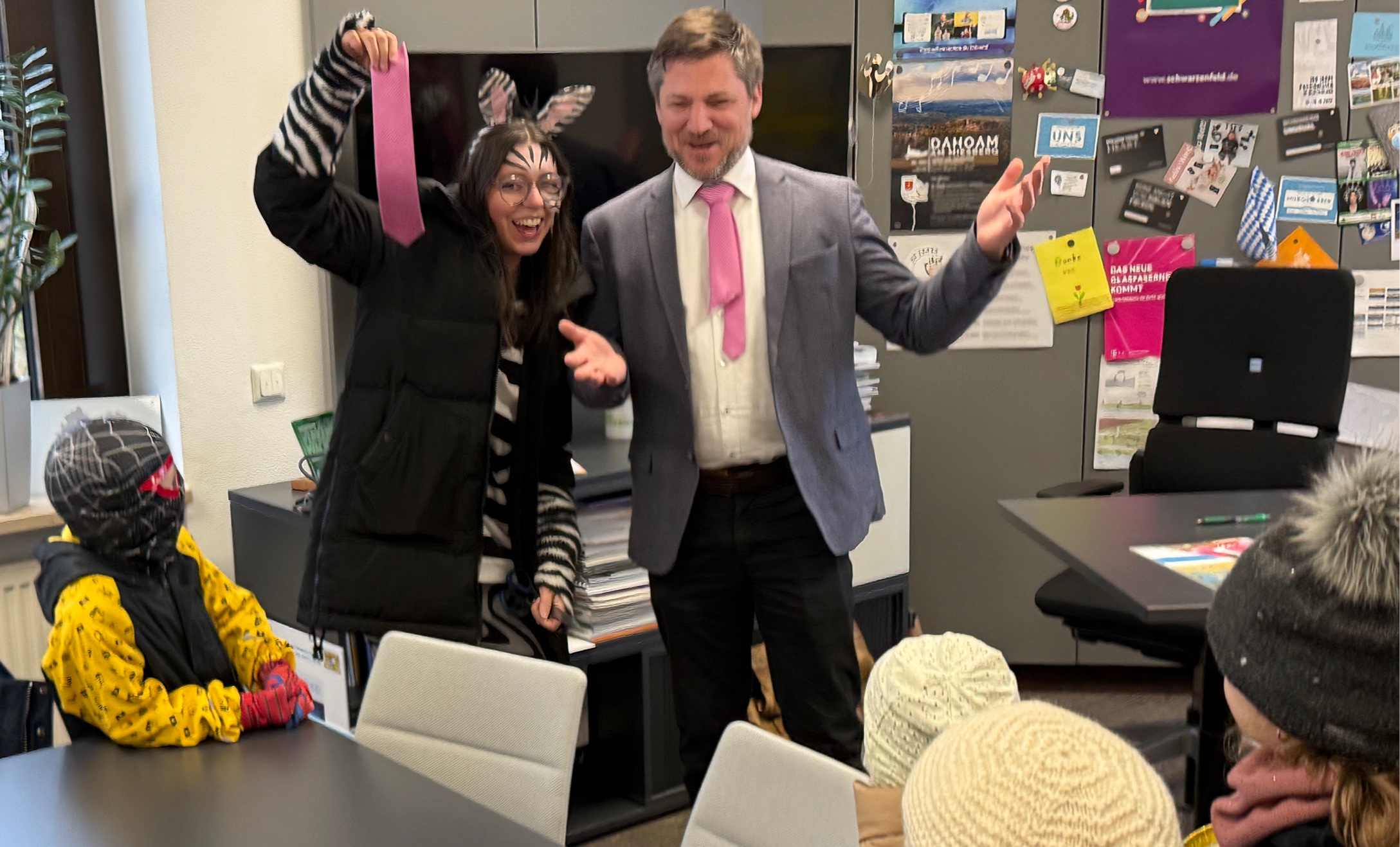 Schon beim Einzug der kleinen Närrinnen und Narren wurde deutlich, dass an diesem Vormittag nicht der Rathausalltag, sondern Spiel, Spaß und Frohsinn im Mittelpunkt standen. Prinzessinnen, Superhelden, Tiere und viele weitere originelle Verkleidungen füllten den Vorplatz des Rathauses mit Farbe und Leben. Begleitet von ihren Erzieherinnen und Erziehern präsentierten die Kinder stolz ihre Kostüme und stimmten fröhliche Faschingslieder an.