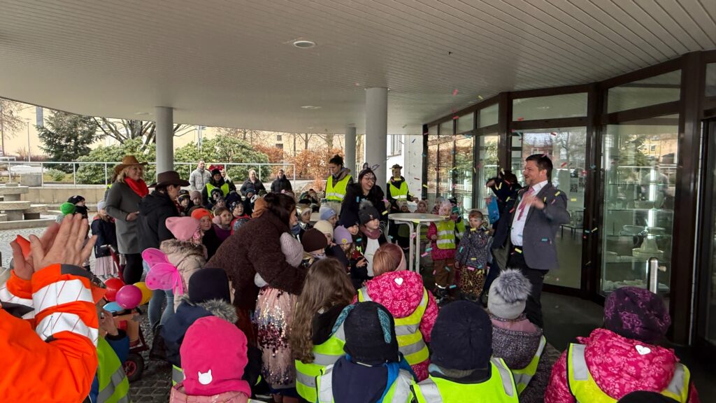 Mehr InformationenSchon beim Einzug der kleinen Närrinnen und Narren wurde deutlich, dass an diesem Vormittag nicht der Rathausalltag, sondern Spiel, Spaß und Frohsinn im Mittelpunkt standen. Prinzessinnen, Superhelden, Tiere und viele weitere originelle Verkleidungen füllten den Vorplatz des Rathauses mit Farbe und Leben. Begleitet von ihren Erzieherinnen und Erziehern präsentierten die Kinder stolz ihre Kostüme und stimmten fröhliche Faschingslieder an.