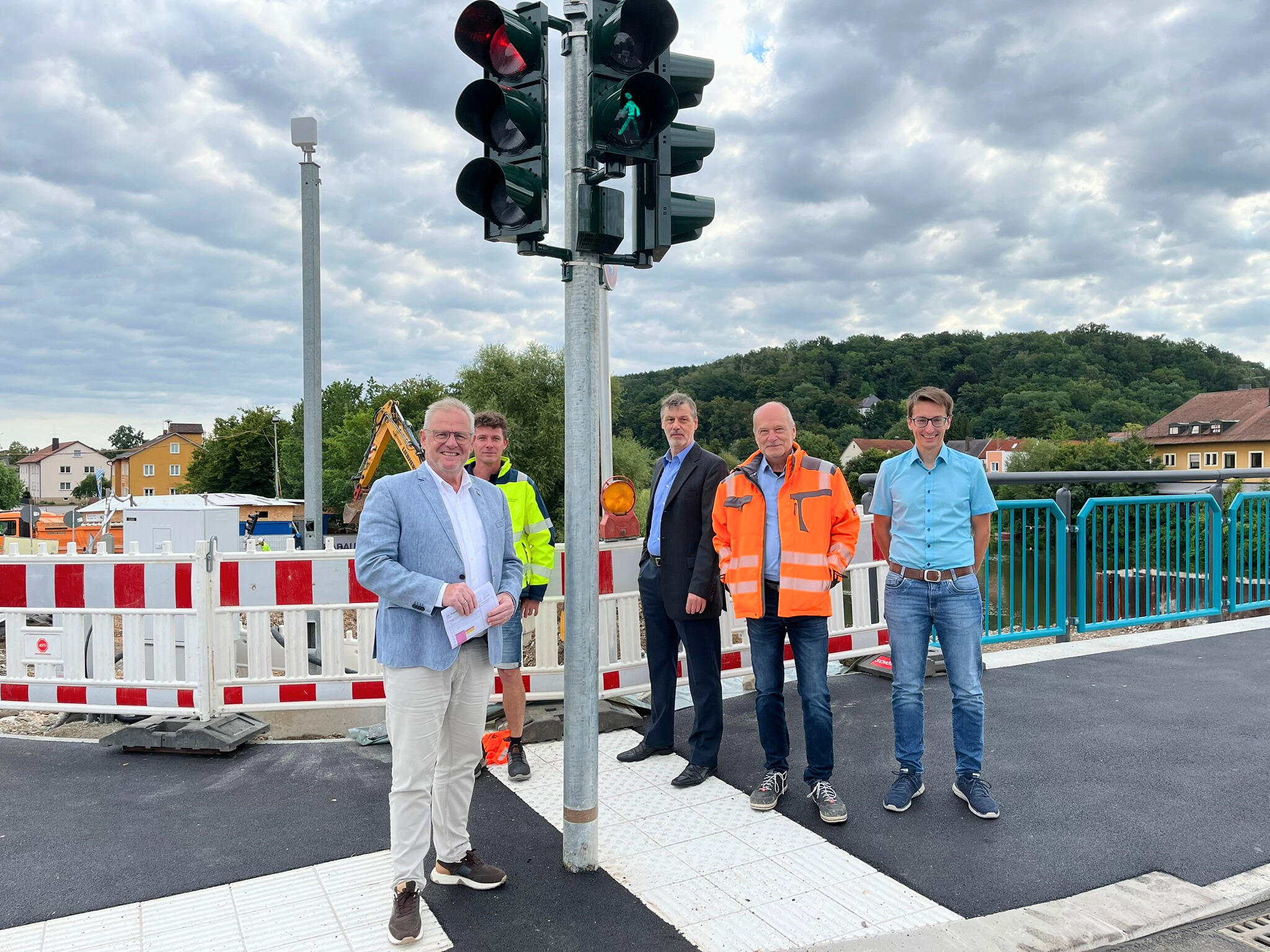 Stadt Schwandorf nimmt neue Fußgängerampel an den neuen Naabbrücken in Betrieb