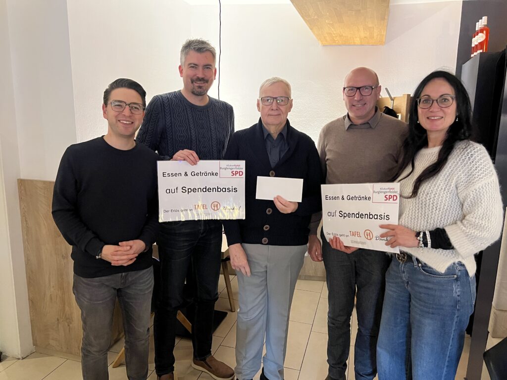BURGLENGENFELD. Mit einer Spende in Höhe von 600 Euro unterstützt der SPD-Ortsverein Burglengenfeld die Arbeit der Schwandorfer Tafel, Ausgabestelle Städtedreieck. Bürgermeisterkandidat Martin Antretter überreichte die Spende an Franz Rother, Leiter der Ausgabestelle, zusammen mit den Ortsvorsitzenden Kerstin von Brincken und Peter Wein sowie 3. Bürgermeister Sebastian Bösl. Wie Martin Antretter informierte, stammt das Geld aus dem gut besuchten Oktoberfest des SPD-Ortsvereins: „Wir haben dabei ganz gezielt um Spenden für die Tafel gebeten.“