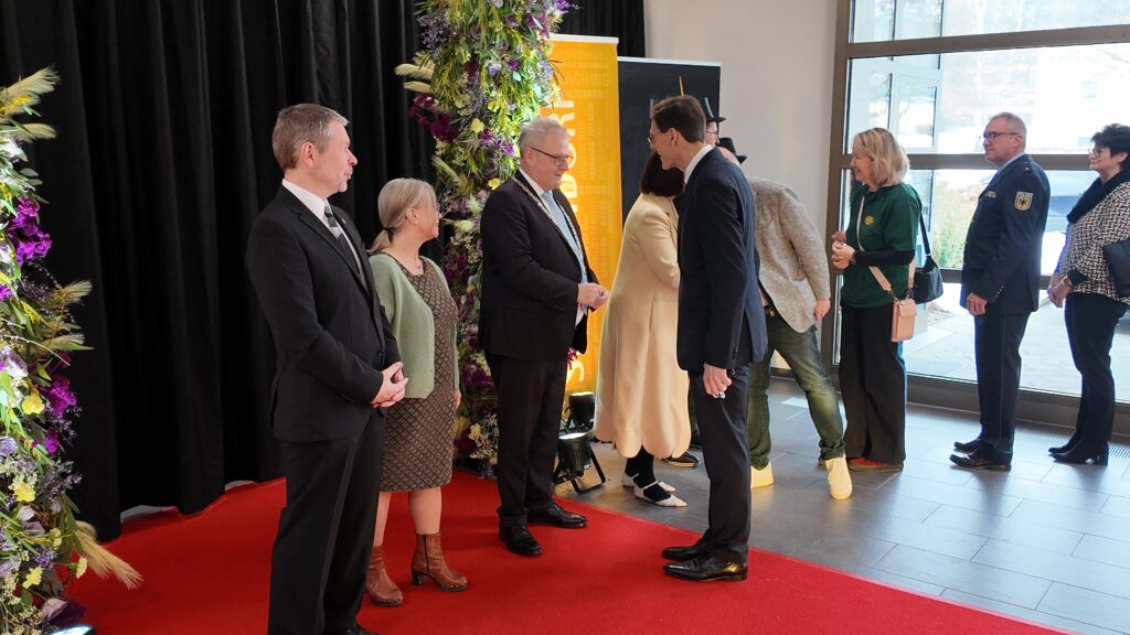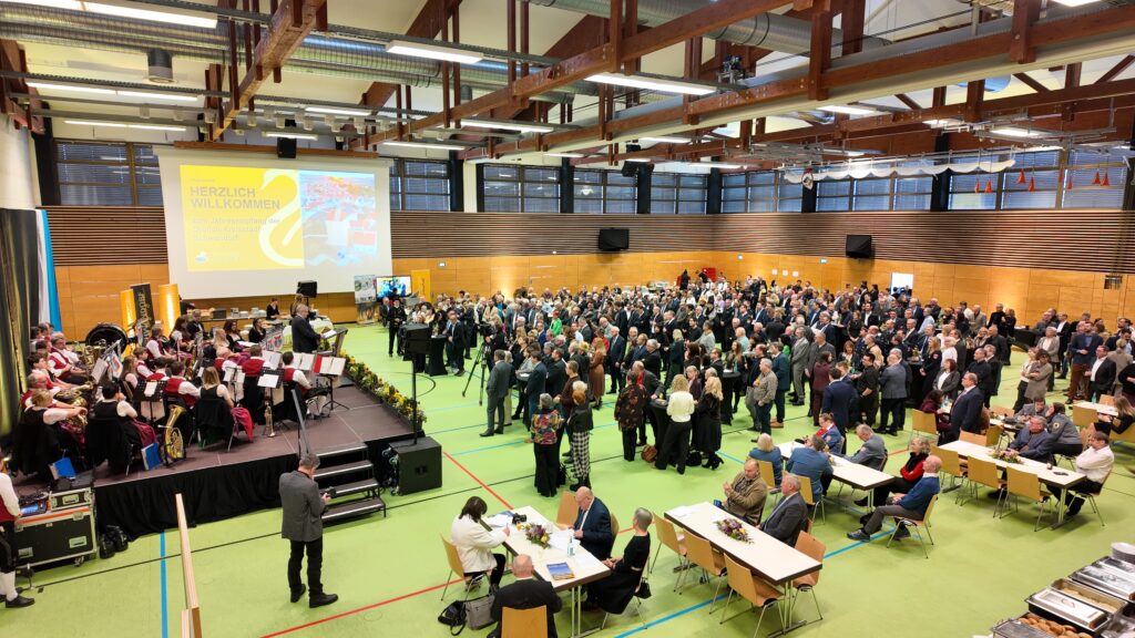 Wie in jedem Jahr hat die Große Kreisstadt Schwandorf ihren Neujahrsempfang abgehalten. Am Sonntagvormittag begrüßte Oberbürgermeister Andreas Feller über 400Gäste in der Oberpfalzhalle. Zusammen mit dem Ehrenmeister der Kaminkehrerinnung Peter Wilhelm sowie dem stellvertretenden Bürgermeister Andreeas Wopperer nahm er die Grüße der Gäste entgegen, die über den roten Teppich in die Halle einzogen. Vertreten waren mit der parlamentarischen Staatssekretärin Martina Englhardt-Kopf(CSU), der Bundestagsabgeordneten Tina Winklmann (B‘90/Grüne), dem örtlichen Stimmkreisabgeordneten im Bayerischen Landtag Alexander Flierl (CSU), LandratThomas Ebeling (CSU) sowie zahlreichen Bürgermeistern Besucher der Politik, des Ehrenamts, der Wirtschaft, der Banken, der Geistlichkeit, der Vereine und der Rettungsorganisationen. Zu den Klängen des Musikvereins Dachelhofen gab es nach der Begrüßung einen Rückblick über das vergangene Jahr, in welchem neben der Sanierung der Naabbrücken weitere kulturelle, bauliche und bildungsrelevante Projekte vorgestellt wurden. Den Austausch bei einem gemeinsamen Mittagessen nutzten die Anwesenden, um Gespräche über Vorhaben und Vorgehensweisen im begonnen Jahr 2026 zu führen.