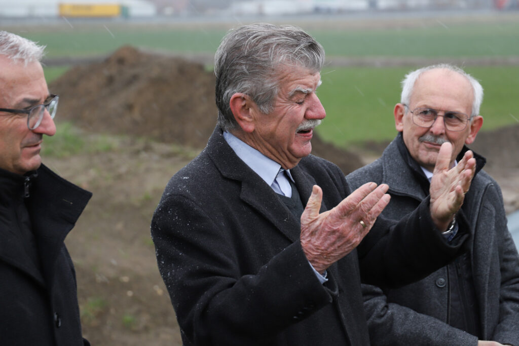 Bei nasskalter Witterung blickten die Rathauschefs Andreas Feller, Thoms Falter, Harald Bemmerl sowie der stellvertretende Landrat Jakob Scharf zunächst zurück auf eine lange Geschichte. Die Anfänge gehen bereits in das vorige Jahrtausend zurück, als sich Schwandorf und Wackersdorf (je 45 Prozent) und Steinberg (10 Prozent) aufmachten, diesen „hochattraktiven Gewerbestandort“ zwischen A 93 und B 85 mit circa 77 Hektar Gesamtfläche zu entwickeln. 2004 wurde ein Zweckverband gegründet. Im März 2021 hat die Regierung der Oberpfalz den Flächennutzungs- und Landschaftsplan genehmigt. Der derzeitige Zweckverbandsvorsitzende Thomas Falter informierte, dass die äußere infrastrukturelle Anbindung bereits begonnen habe. Dazu gehören die Sparten Schmutzwasser, Regenwasser und Wasserversorgung. Schmutz- und Regenwasser werden künftig über eine Pressleitung auf die Südseite der B 85 geführt und an bestehende Infrastruktureinrichtungen wie das Regenüberlaufbecken (RÜB) und das Schmutzwasserpumpwerk angeschlossen.