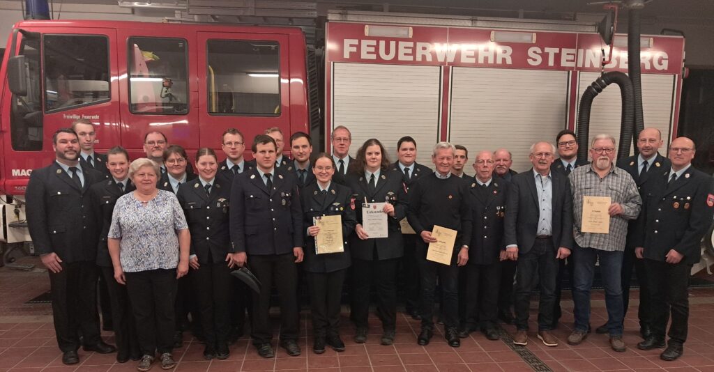 Landrat Thomas Ebeling führte aus, dass sich der Landkreis „auf seine Feuerwehren verlassen kann“. Man sei „sehr gut aufgestellt“, wozu auch die Steinberger Feuerwehr mit „bemerkenswerten Einsätzen“ beigetragen habe. Bürgermeister Harald Bennerl hob das „gute Einvernehmen von Wehr und Gemeinde“ hervor. Man habe in jüngster Vergangenheit auch in den Brandschutz am Haus investiert und könne nun auch wieder Veranstaltungen im Versammlungsraum im Obergeschoss abhalten. Kreisbrandrat Christian Demleitner nannte die Steinberger Floriansjünger einen „verlässlichen Partner“ und dankte vor allem für die Nutzung der Strukturen des PSNV (Psychosoziale Notfallversorgung). Hier nehme der Landkreis eine Vorreiterrolle ein. Ziel sei die Bewältigung kritischer Lebensereignisse und der damit einhergehenden Belastungen.