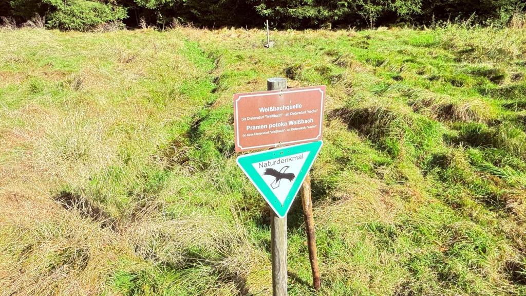 Die Weißbachquelle – Ab Dietersdorf heißt das kleine Bächlein Ascha.