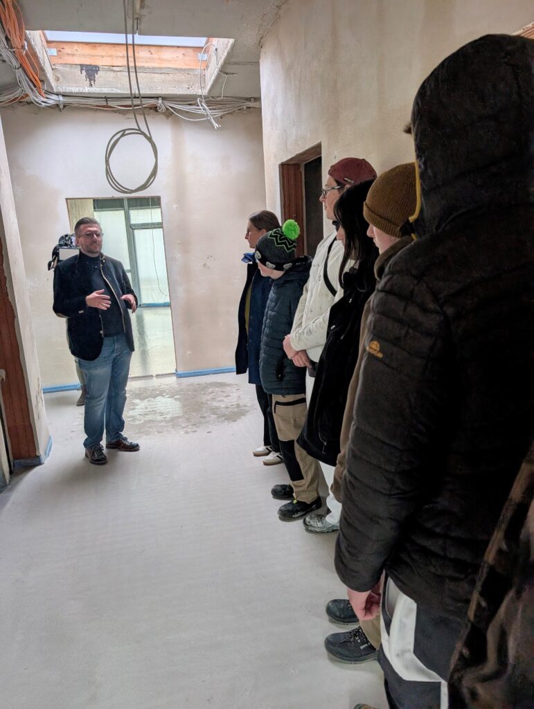 Mehr InformationenIm Haus des Guten Hirten in Schwandorf/Ettmannsdorf hat sich vor wenigen Wochen der Bauinvestor Matthias Simmel über die Arbeit und Ausbildung der dortigen Azubis informiert. Nun folgte bei einem „Tag des Handwerks“ die Verknüpfung für die Jugendlichen mit realen Bauunternehmen auf der Baustelle von Matthias Simmel an der Hoher-Bogen-Straße unterhalb der Polizeiinspektion Schwandorf.