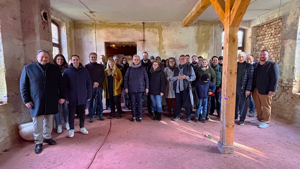 Wie schon bei den bisherigen Empfängen begann der Nachmittag mit einer Führung durch das Industriedenkmal „D‘Schleif“ in Münchshofen. Ortsheimatpfleger Matthias Haberl führte die Gruppe über das Gelände des ehemaligen Glasschleif- und Polierwerks an der Naab und gab spannende Einblicke in die Geschichte des traditionsreichen Industriedenkmals aus dem 19. Jahrhundert.