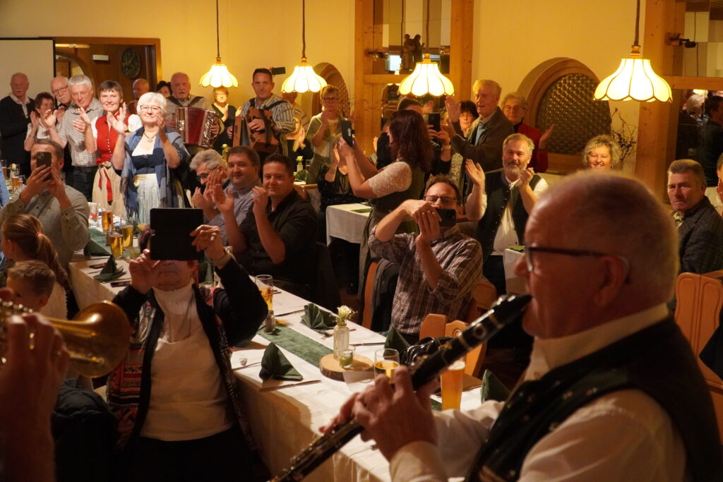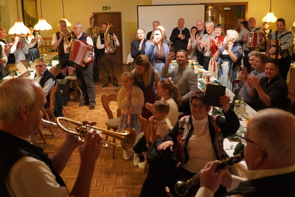 Grußworte von Thomas und Alois Zinnbauer der „Stoapfälzer Spitzbuam“ sowie von Gerhard Spitaler von den „Zellberg Buam“ aus dem Zillertal folgten. Bis in die Morgenstunden musizierten schließlich die Anwesenden zusammen mit dem Jubilar, der mit seinen 74 Jahren bis heute mit ungebremster Freude zu seinen Instrumenten greift.