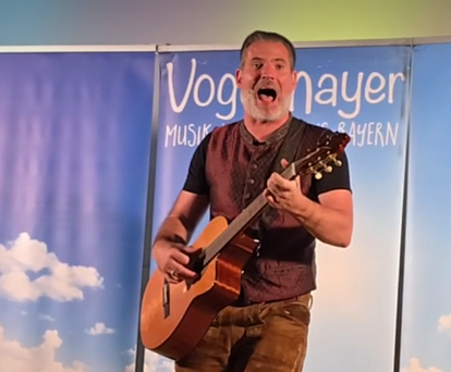 Egal – die, die trotzdem gekommen sind, brauchten Ihr Kommen nicht bereuen. Nur begleitet von seiner Gitarre, unterhaltsam, äußerst sympathisch mit bayerisch-narrischem Witz und Wortspielereien sowie hintersinnigen und -gründigen Humor verstand es die selbsternannte „Rampensau“ Vogelmayer, die Leute immer wieder zum Schmunzeln und zum Lachen zu bringen. Voller Energie alberte, philosophierte und zupfte er sich durch den Abend. Manche doppeldeutigen Witze brauchten kurz, bis sie beim Publikum zündeten. Zum Beispiel so valentinesk-absurde Einsichten wie: „Das Schwierige am Nixtun ist, dass‘d net weißt, wanns‘d fertig bist.“ Ein paar weitere Beispiele gefällig? „Mog scho einer eine CD kaufen, denn erfahrungsgemäß kann man vor dem ersten Lied die eine oder andere verkaufen, danach geht eh nix mehr?“ Oder: „Warum irrt der Henker umher, Antwort ist nicht besonders schwer, weil der Heimweg mal wieder nicht klappte, denn der Henker nur die Hin-Richtung im Kopfe hatte.“
