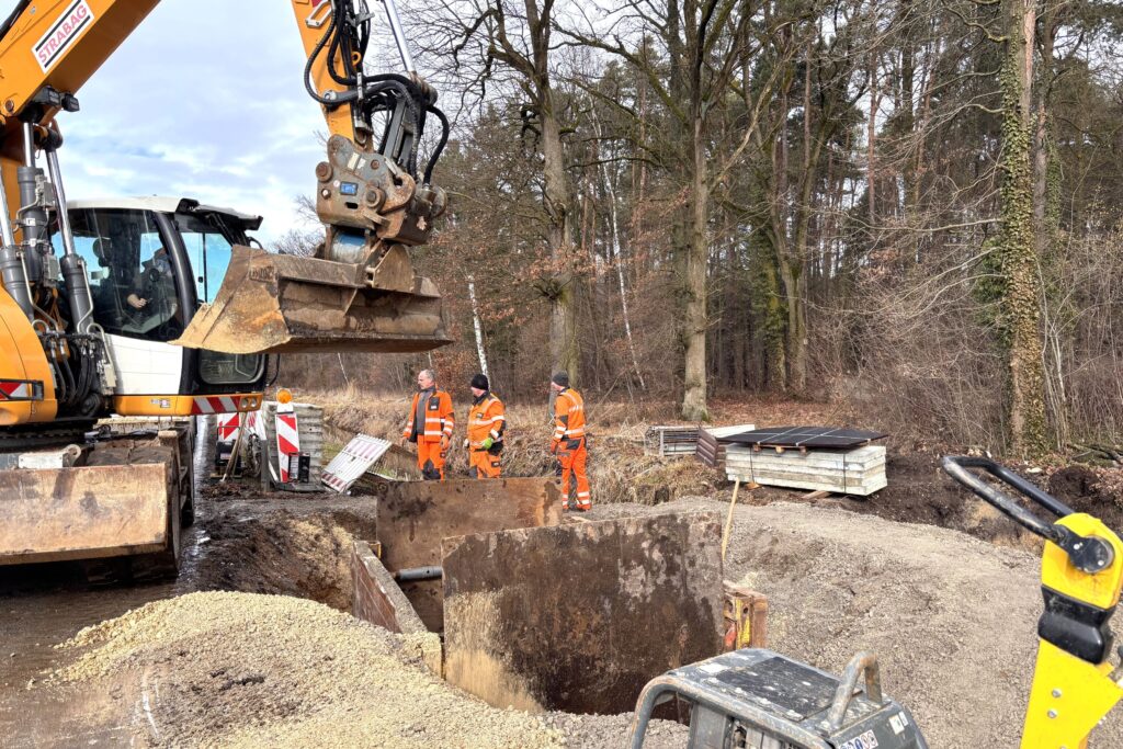 Nach Abstimmung mit dem Wasserwirtschaftsamt Weiden und der Unteren Naturschutzbehörde des Landratsamtes Schwandorf dürfen Eingriffe im Bachbett ausschließlich in den Wintermonaten erfolgen. Hierzu wurde der Graben für die Bauphase vorübergehend verrohrt. Ursprünglich war der Baubeginn für den 26. Januar 2026 vorgesehen, musste jedoch aufgrund anhaltender Frosttemperaturen verschoben werden. Seit Mitte Februar 2026 schreiten die Arbeiten nun planmäßig voran.