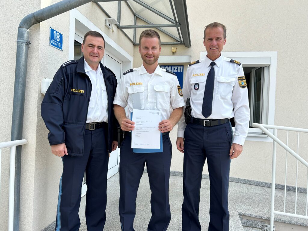 v.l.n.r.: Erster Polizeihauptkommissar Franz Wenig, Polizeihauptkommissar Mario Mühlbauer, Polizeivizepräsident Robert Fuchs. Foto: PSt Nittenau/Michl