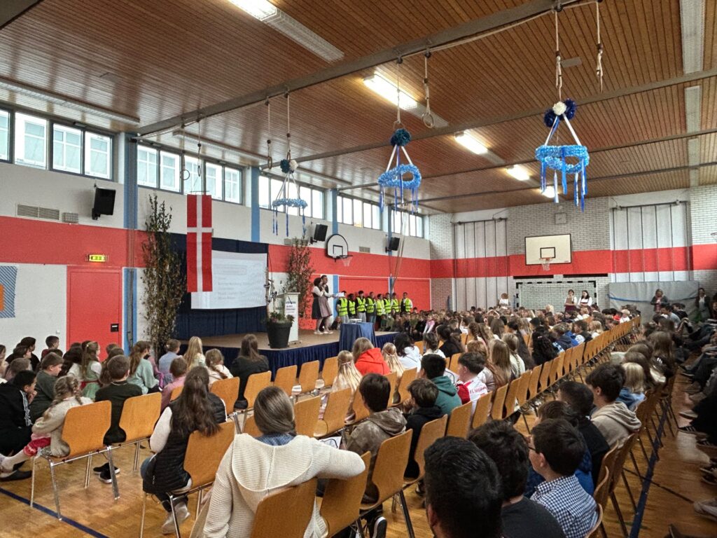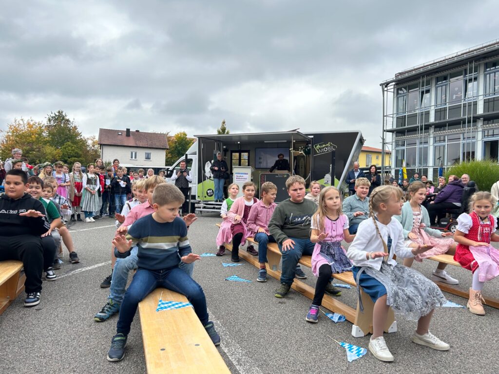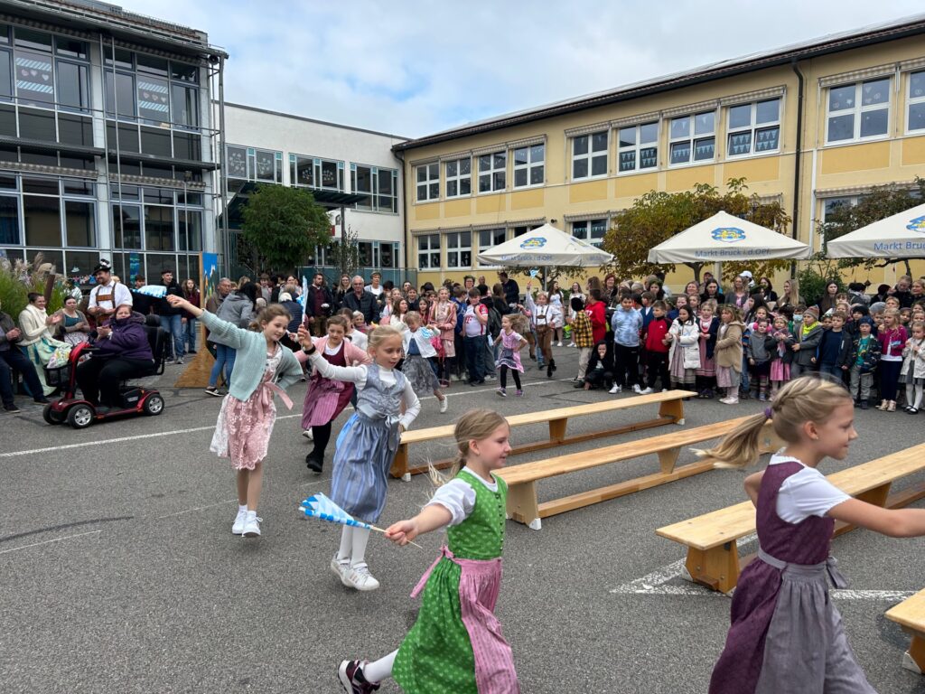 Unter diesem lauten „Schlachtruf“ startete die gesamte Schulfamilie der Grund- und Mittelschule Bruck ihre bereits traditionelle Kirchweih-Feier eine Woche vor dem eigentlichen Termin. Konrektorin Sonja Mühlbauer stimmte alle Teilnehmenden in der Turnhalle mit einem kurzweiligen, informativen Vortrag über Geschichte und Herkunft der Kirchweih auf den Tag ein und hisste dabei auch den „Zacherl“, die traditionelle Kirchweih-Fahne. Anschließend begaben sich die Schülerinnen und Schüler der Brucker Schule und die Viertklässler der Grundschule Bodenwöhr, die ebenfalls zur Kirwa eingeladen waren, auf eine Reise zu bayrischen Traditionen und kreativen Arbeitsgruppen durchs Schulhaus. In verschiedenen Workshops, die von den Lehrkräften der Grund- und Mittelschule, aber auch von Brucker Vereinen wie dem Musikverein, dem Trachtenverein Enzian und der Feuerwehr angeboten wurden, durften sie ihre Kenntnisse zu den bayrischen Traditionen erweitern – oder sie gleich ausprobieren! Sie erfuhren viel Wissenswertes zu Kirchweihliedern, bayrischen Tänzen oder zum Kartenspiel „Watten“, verausgabten sich beim Maßkrug-Stemmen, Hackstocknageln und bayrischem Maßkrug-Schieben. Außerdem bereiteten die Jugendlichen Köstlichkeiten für die Kirchweihfeier vor, bastelten bayerische Windlichter, Namens-Wäscheklammern, Nagelbilder und Vieles mehr. Krönung des Tages war dann die gemeinsame Feier im Pausenhof, zu der auch die ganze Bevölkerung eingeladen war und bei der mit vereinter „Manpower“ der Kirwabaum aufgestellt wurde, der von den Schülern der Technik-Gruppe selbst gefertigt und mit dem Wappen der Schule verziert worden war. Nachdem der Schulleiter Markus Binder gemeinsam mit der Schulverbandsvorsitzenden und Bürgermeisterin Heike Faltermeier die Anwesenden begrüßt hatte, wurden einstudierte Lieder und bayerische Tänze zum Besten gegeben. Dazu war wiederum auch der stellvertretende Bezirksheimatpfleger, Florian Schwemin, mit dem Heimatmobil des Bezirks Oberpfalz an die Schule gekommen, und unterstützte die Singenden und Tanzenden mit Gitarre und Quetsche. Für das leibliche Wohl war ebenfalls bestens gesorgt: Der Elternbeirat wartete mit einem kulinarischen Angebot auf, das mit Würstelsemmeln, Schnittlaubroten und diversen traditionellen Kirwa-Gebäcken keine Wünsche offenließ. Zu guter Letzt wurden noch die Champions der bayrischen Traditionswettkämpfe bekanntgegeben und ein Match zwischen Schüler- und Lehrermannschaft ausgetragen. Der Schulleiter Markus Binder entschied beim Maßkrugstemmen – einer Disziplin, bei der man einen gefüllten Maßkrug mit ausgestrecktem Arm halten muss – den Wettkampf für die Lehrermannschaft! Das schreit nach einer Revanche im nächsten Jahr, die Niederlage tat der Feierlaune der Schüler jedoch keinen Abbruch.