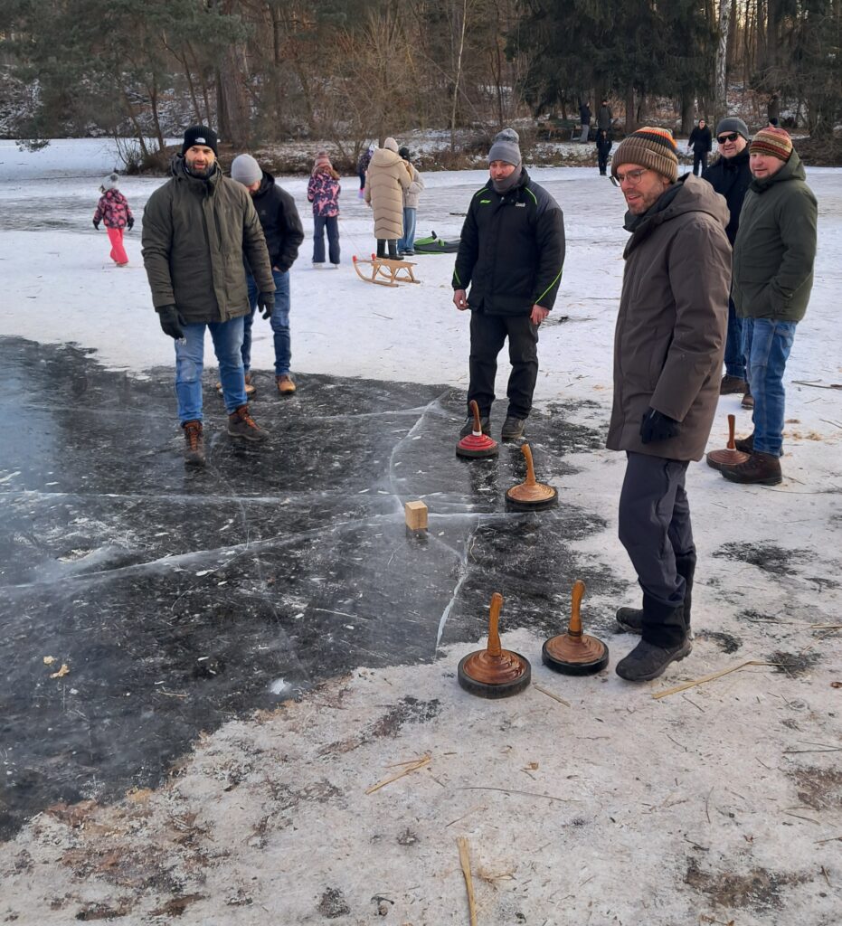 Sie sind selten geworden in den letzten Jahren… die kalten Wintertage, in denen Weiher über eine längere Zeit zugefroren sind. Im ganzen Landkreis nutzt die Bevölkerung mit viel Spaß jede vereiste Fläche zum „Eisstöckeln“ in ursprünglicher Form, zum Schlittschuhlaufen, selbst zum Eishockey auf spontan zusammengebaute Tore. Vor allem das Eisstockschießen auf purem Natureis findet trotz toller Sommerstockbahnen in vielen Kommunen großen Anklang, sowohl bei den Aktiven der Eisstockvereine als auch sei den Amateuren und Liebhabern dieser uralten Sportart, die in Skandinavien schon im 13.Jahrhundert nachgewiesen ist.